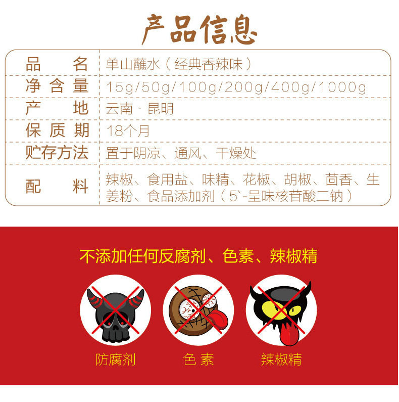 | Packaging specifications | 3g*10 bags spicy spicy [limited time trial],3g*30 bags spicy and spicy [small bags are convenient and affordable],400g spicy spicy [authentic yunnan flavor],400g*25 bags [whole box wholesale is more cost-effective] |