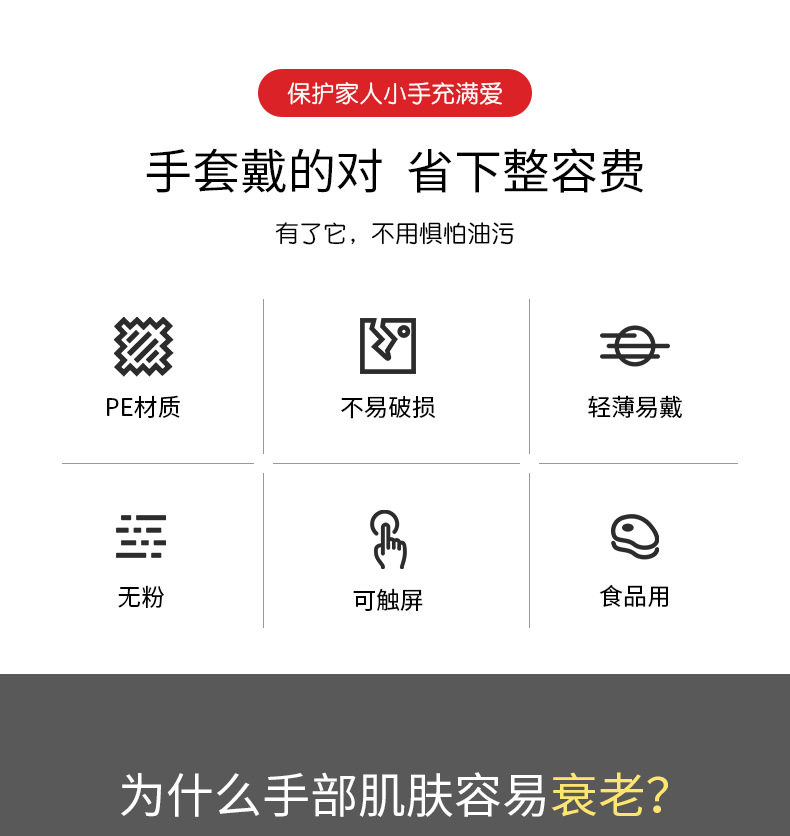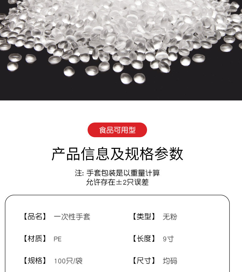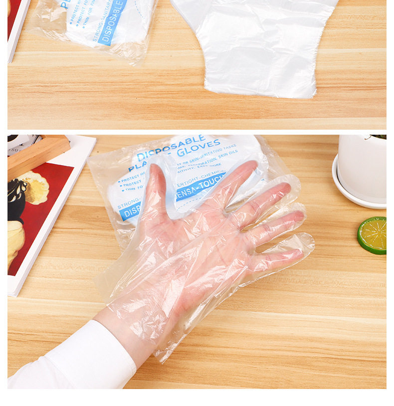 Factory direct food catering baking hair plastic transparent thickened pe gloves 100 wholesale disposable gloves