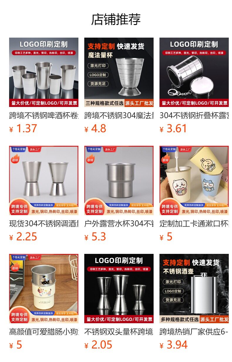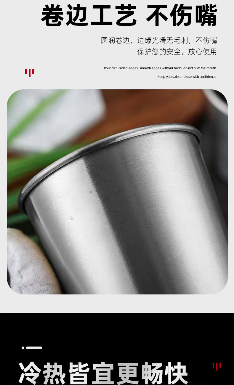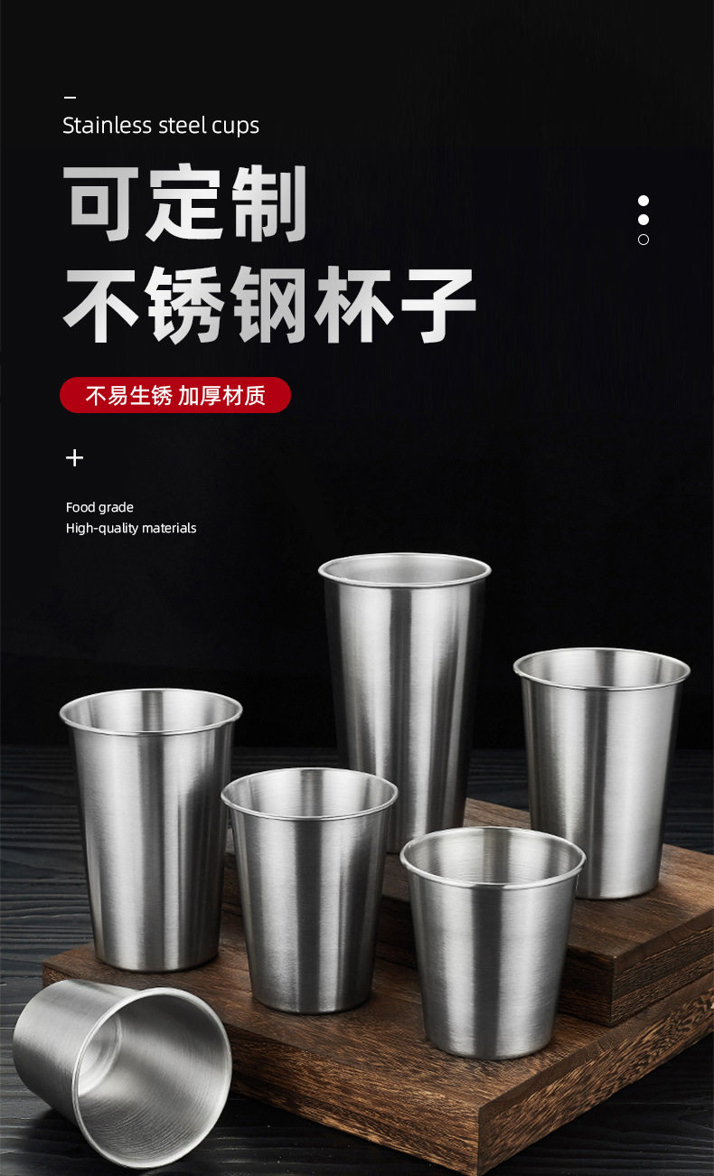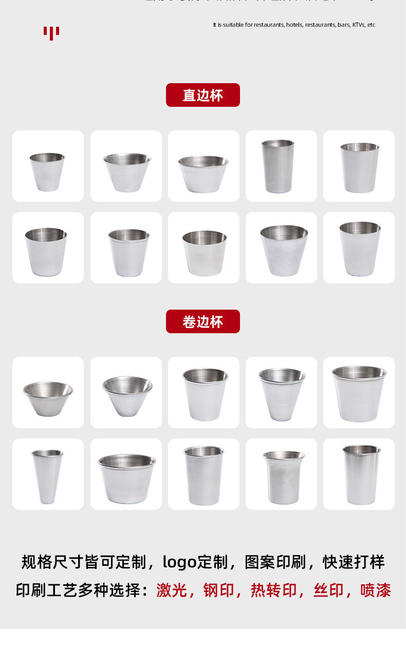 Cross-Border Stainless Steel Beer Mug, Curled Wine Glass, High-End Water Glass, Spirit Glass, Condiment Cup, Printed Logo Wholesale