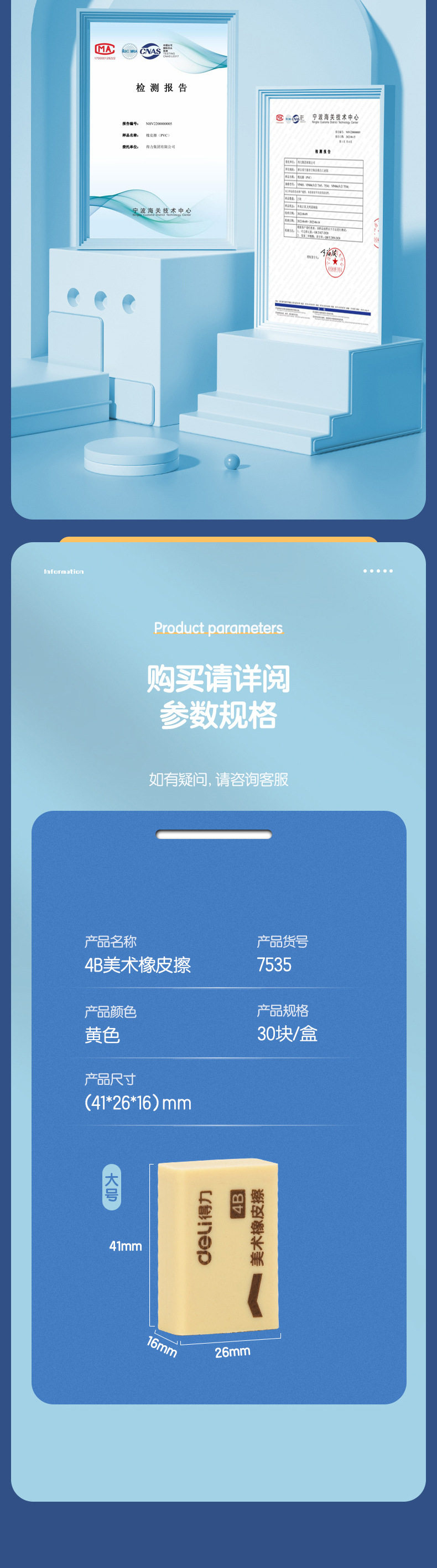 Deli 7535 Eraser Test 4B Rubber Art Drawing 200A Large Sketch Rubber Office Student Stationery