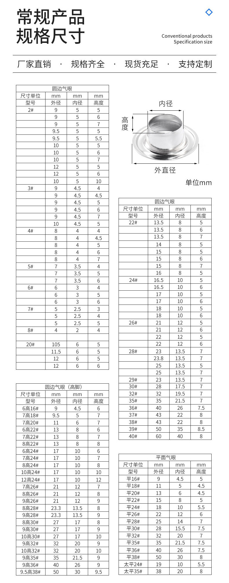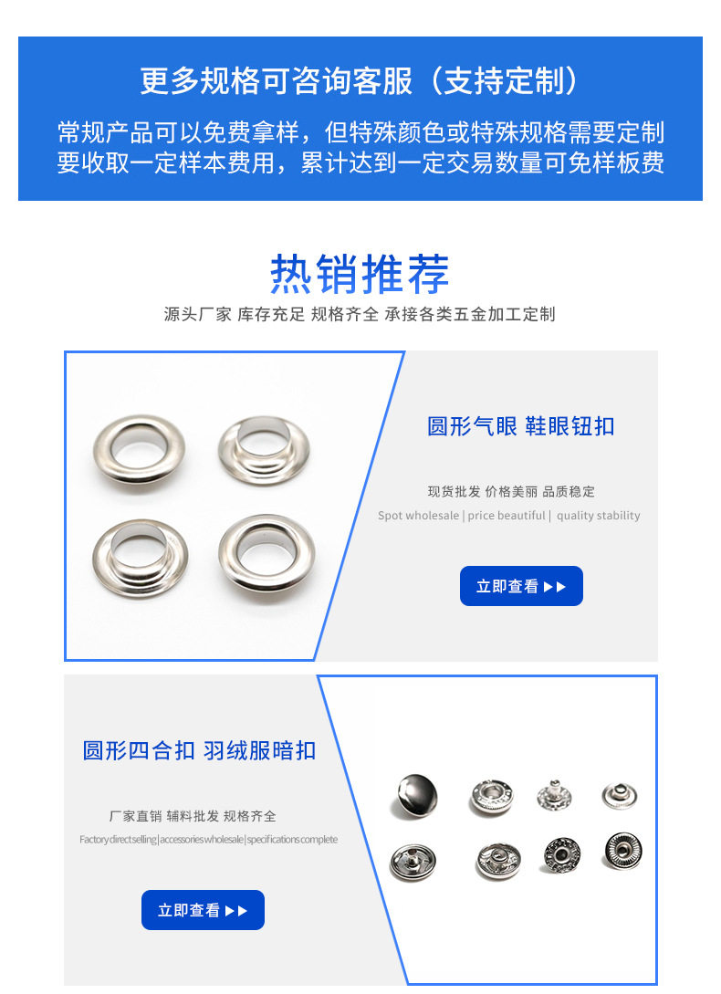 Factory Direct Supply Metal Eyelet Button with Claw Tent Double-Sided Buttonhole Ready-Made Stainless Steel Eyelet Metal Button