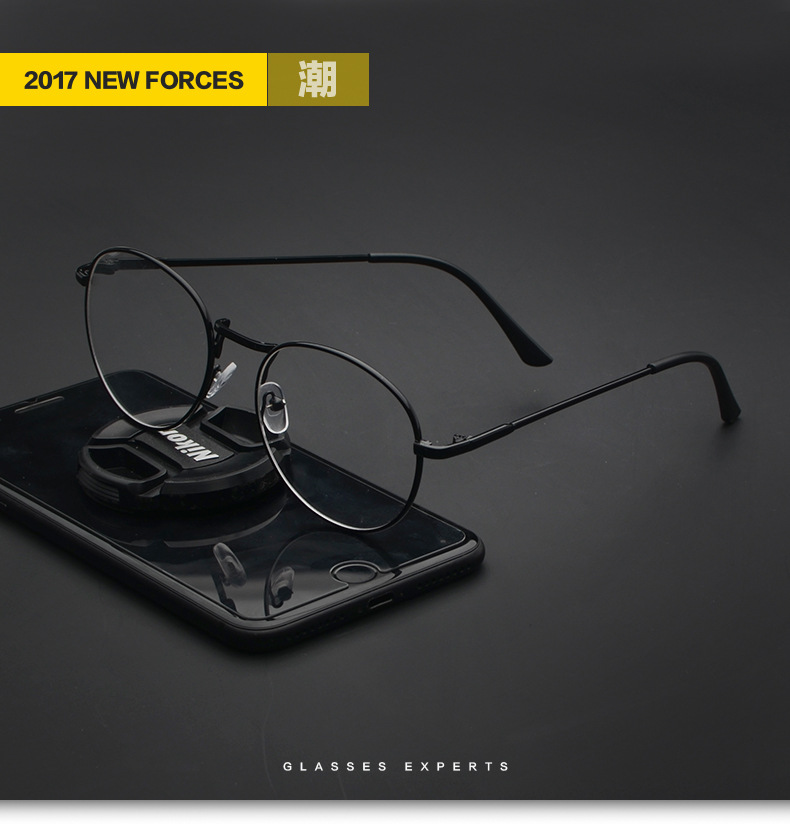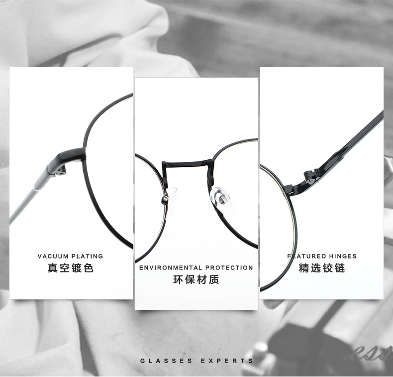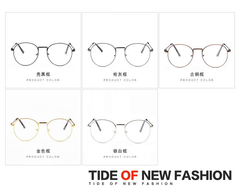 Korean Literary Harajuku Thin Frame 9254 Metal Glasses Frame Myopia Men and Women Ultra-Light Retro Round Flat Glasses