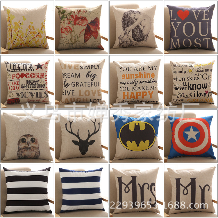 Hot-selling Creative English Letters European Fashion Style Linen Pillowcase Cushion Cover Available in Multiple Colors