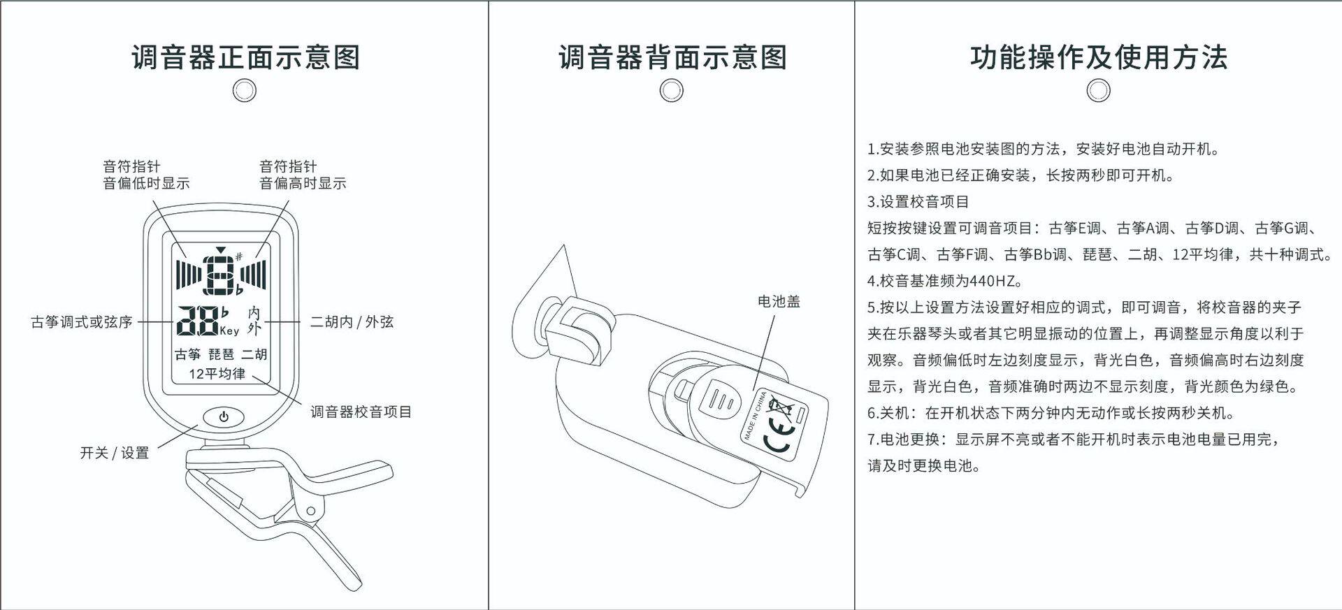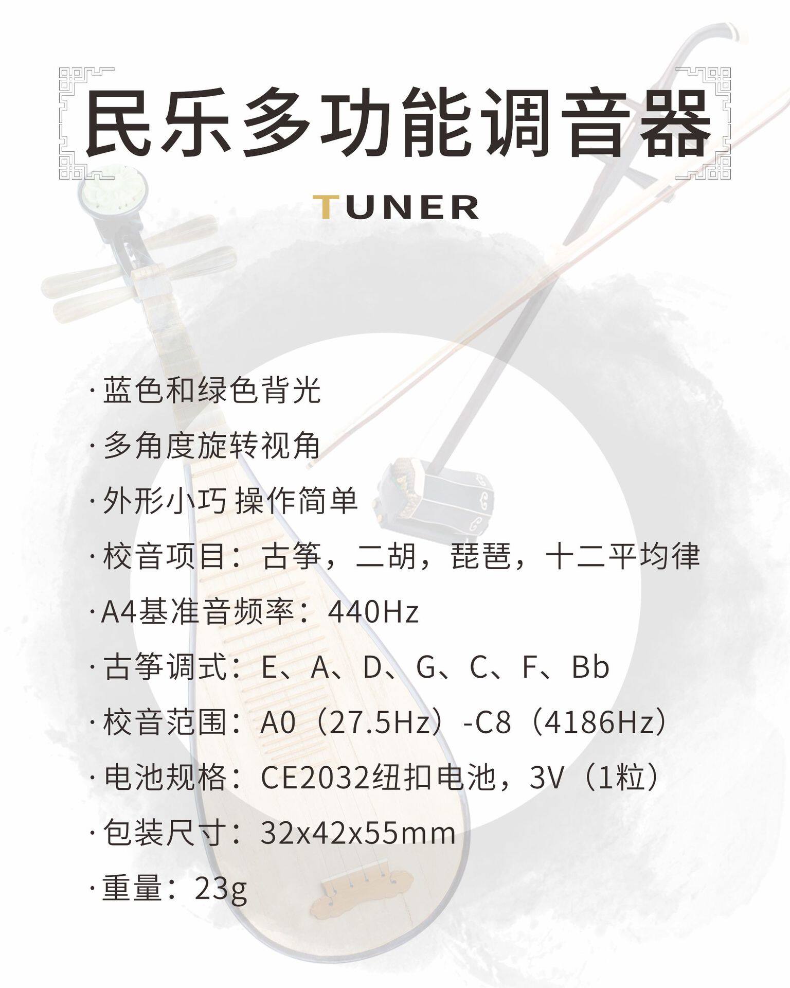 Folk Guitar Tuner Violin Folk Music Guzheng Pipa Erhu Twelve Average Tone Multifunctional Tuner