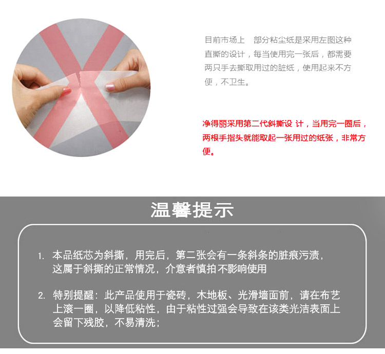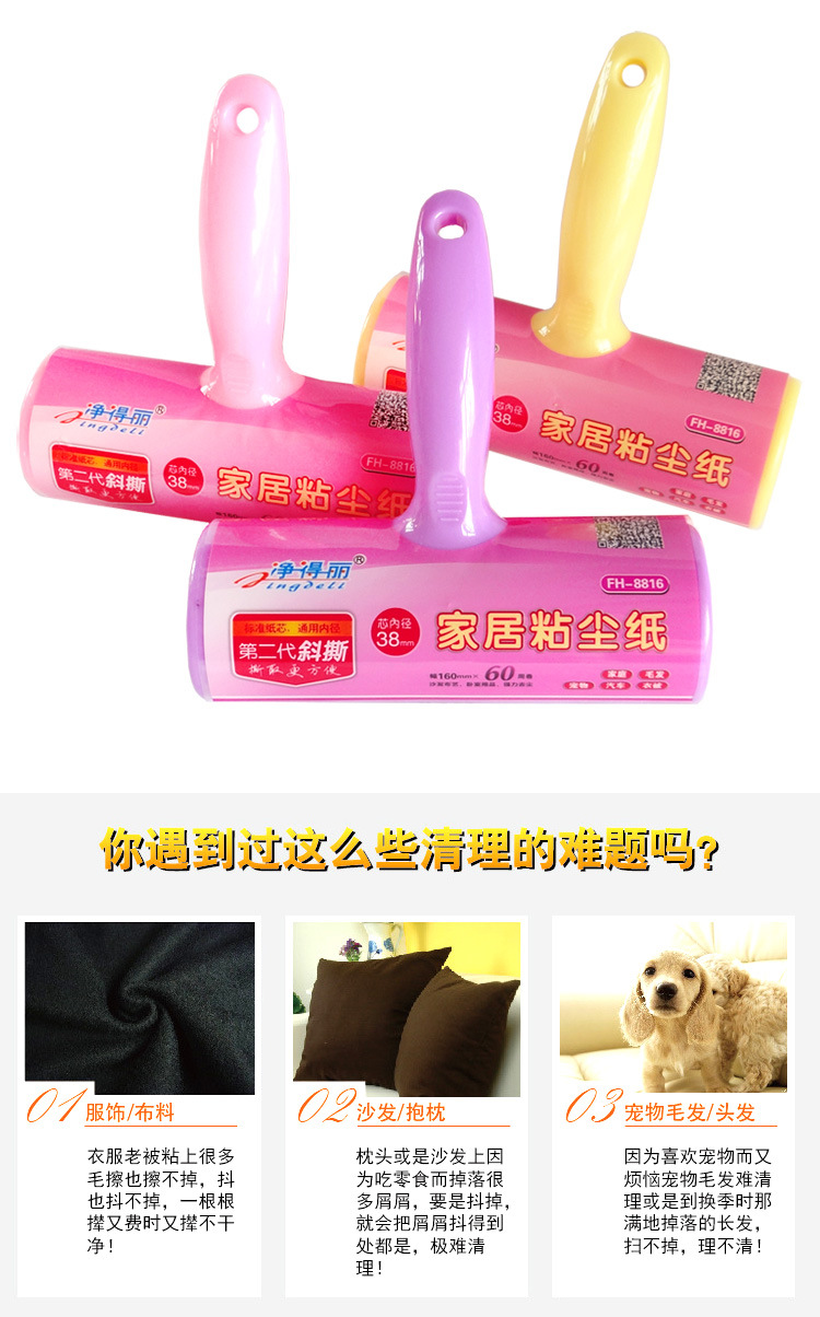 Jingdeli large-size home sticky roller sticky dust collector dust removal roller brush hair removal roller with oblique tear paper core
