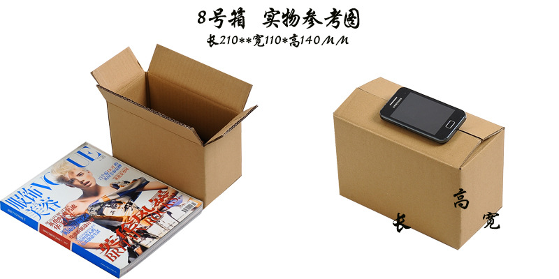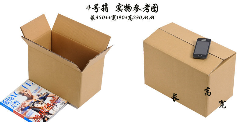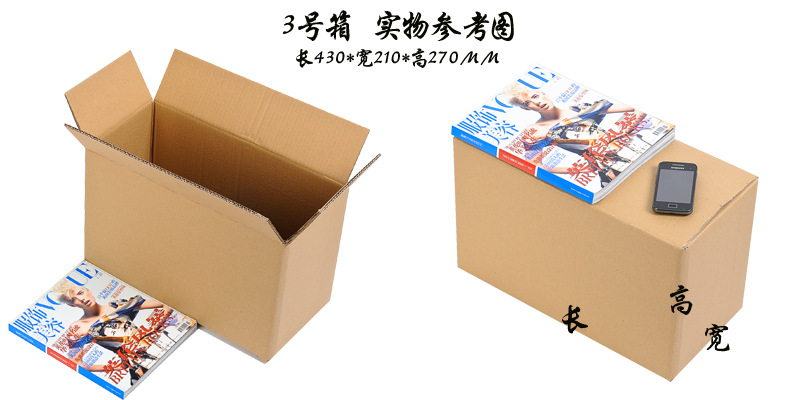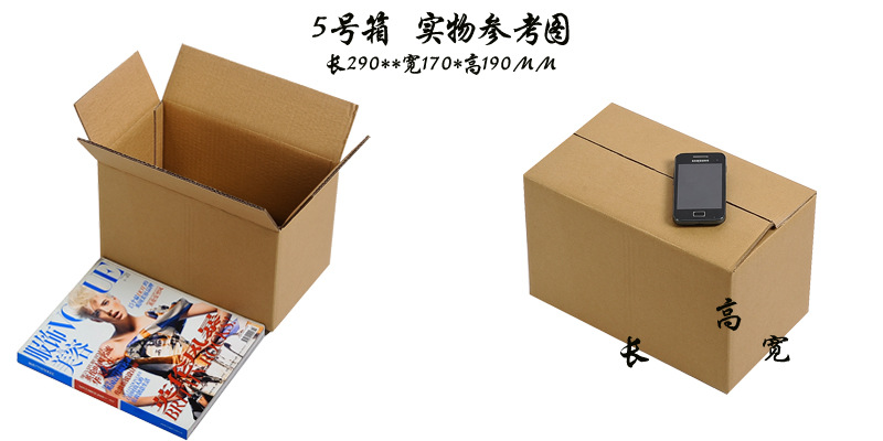 | Specification model | No. 12 (130*80*90); three layers of blank [high quality],No. 12 (130*80*90); five layers of blank [high quality],No. 12 enlarged (135*85*98); three layers of blank [high quality],No. 12 enlarged (135*85*98); five layers of blank [high quality],No. 11 (145*85*105); three layers of blank [high quality],No. 11 (145*85*105); five layers of blank [high quality],No. 11 enlarged (150*90*110); three layers of blank [high quality],No. 11 enlarged (150*90*110); five layers of blank [high quality],No. 10 (175*95*115); three layers of blank [high quality],No. 10 (175*95*115); five layers of blank [high quality],No. 9 (195*105*135); three layers of blank [high quality],No. 9 (195*105*135); five layers of blank [high quality],No. 9 (195*105*135); three layers of blank [extra hard],No. 8 (210*110*140); three layers of blank [high quality],No. 8 (210*110*140); five layers of blank [high quality],No. 8 (210*110*140); three layers of blank [extra hard],No. 8 (210*110*140); three-layer exquisite gift red box,No. 7 (230*130*160); three layers of blank [high quality],No. 7 (230*130*160); five layers of blank [high quality],No. 7 (230*130*160); three layers of blank [extra hard],No. 6 (260*150*180); three layers of blank [high quality],No. 6 (260*150*180); five layers of blank [high quality],No. 6 (260*150*180); three layers of blank [extra hard],No. 5 (290*170*190); three layers of blank [high quality],No. 5 (290*170*190); five layers of blank [high quality],No. 5 (290*170*190); three layers of blank [extra hard],No. 4 (350*190*230); three layers of blank [high quality],No. 4 (350*190*230); five layers of blank [high quality],No. 4 (350*190*230); three layers of blank [extra hard],No. 3 (430*210*270); three layers of blank [high quality],No. 3 (430*210*270); five layers of blank [high quality],No. 2 (530*230*290); five layers of blank [high quality],No. 1 (530*290*370); five layers of blank [high quality],Moving box (600*400*500); five layers of blank [high quality],Moving box (700*500*500); five layers of blank [high quality],Essence no. 5 (135*110*110mm); three layers of blank [high quality] |