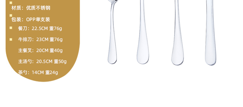 | Color | 1010 steak knife,1010 main table knife,1010 main fork,1010 main serving spoon,1010 teaspoons,1010 round head steak knife |