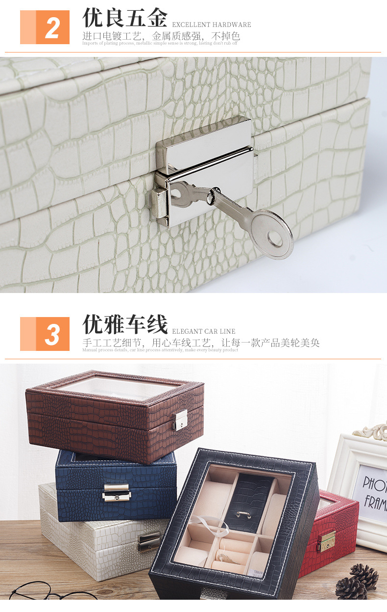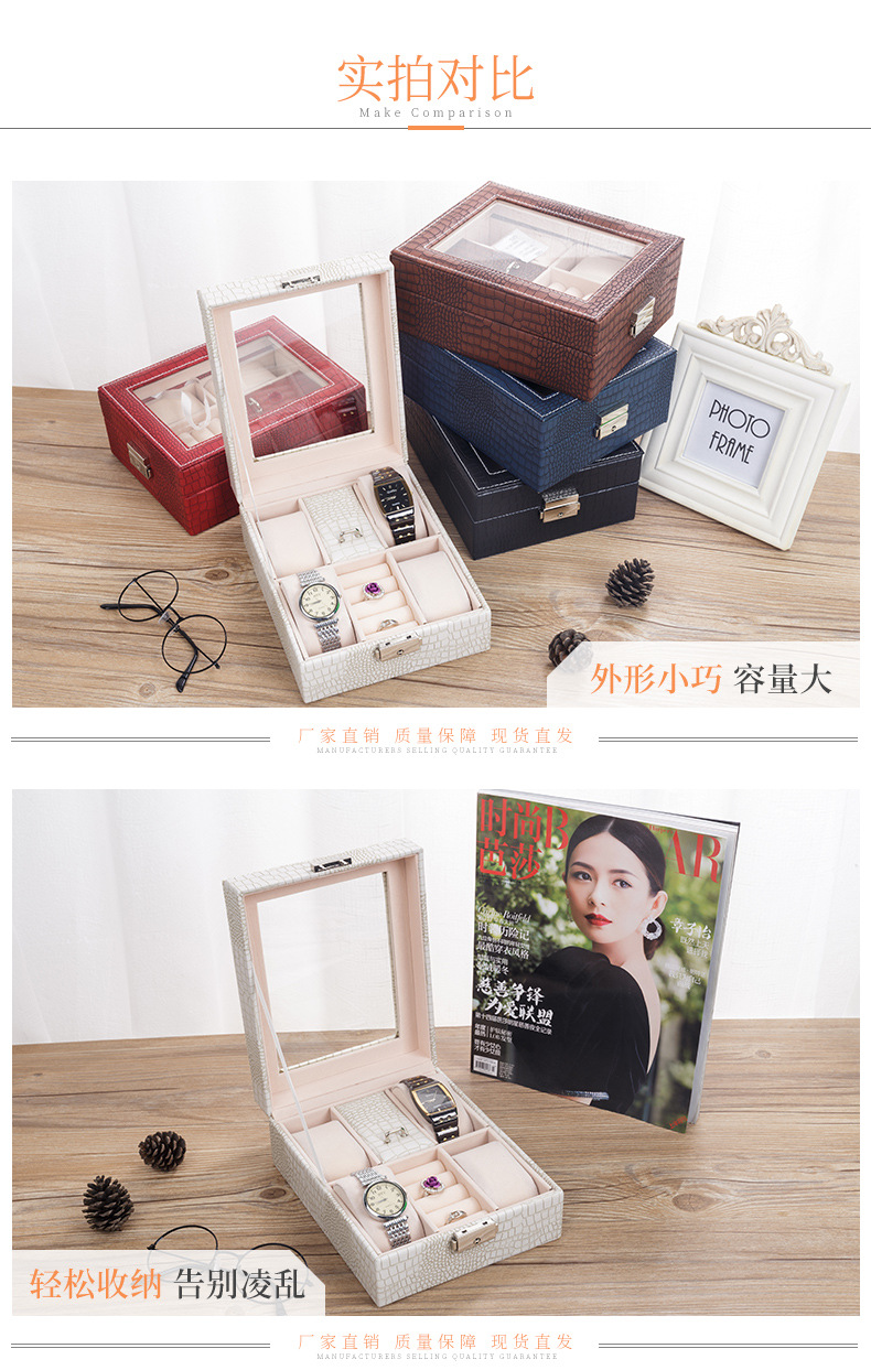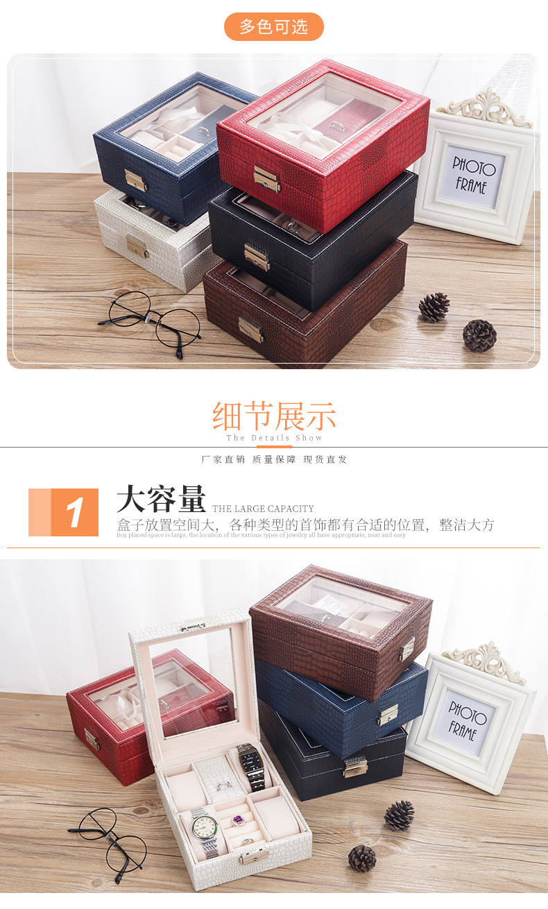 PU Watch Box Lizard Print Leather 4-Bit Watch Box Leather with Lock Flip Portable Ring Watch Storage Box