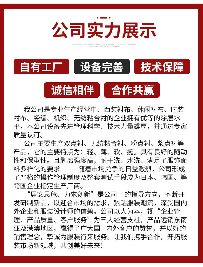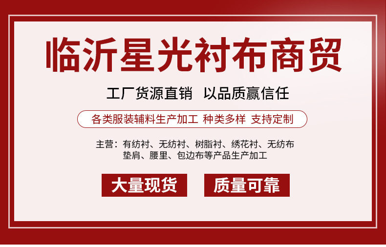 Non-woven woven woven molding adhesive lining straight silk oblique silk double-sided cashmere molding lining garment accessories adhesive lining