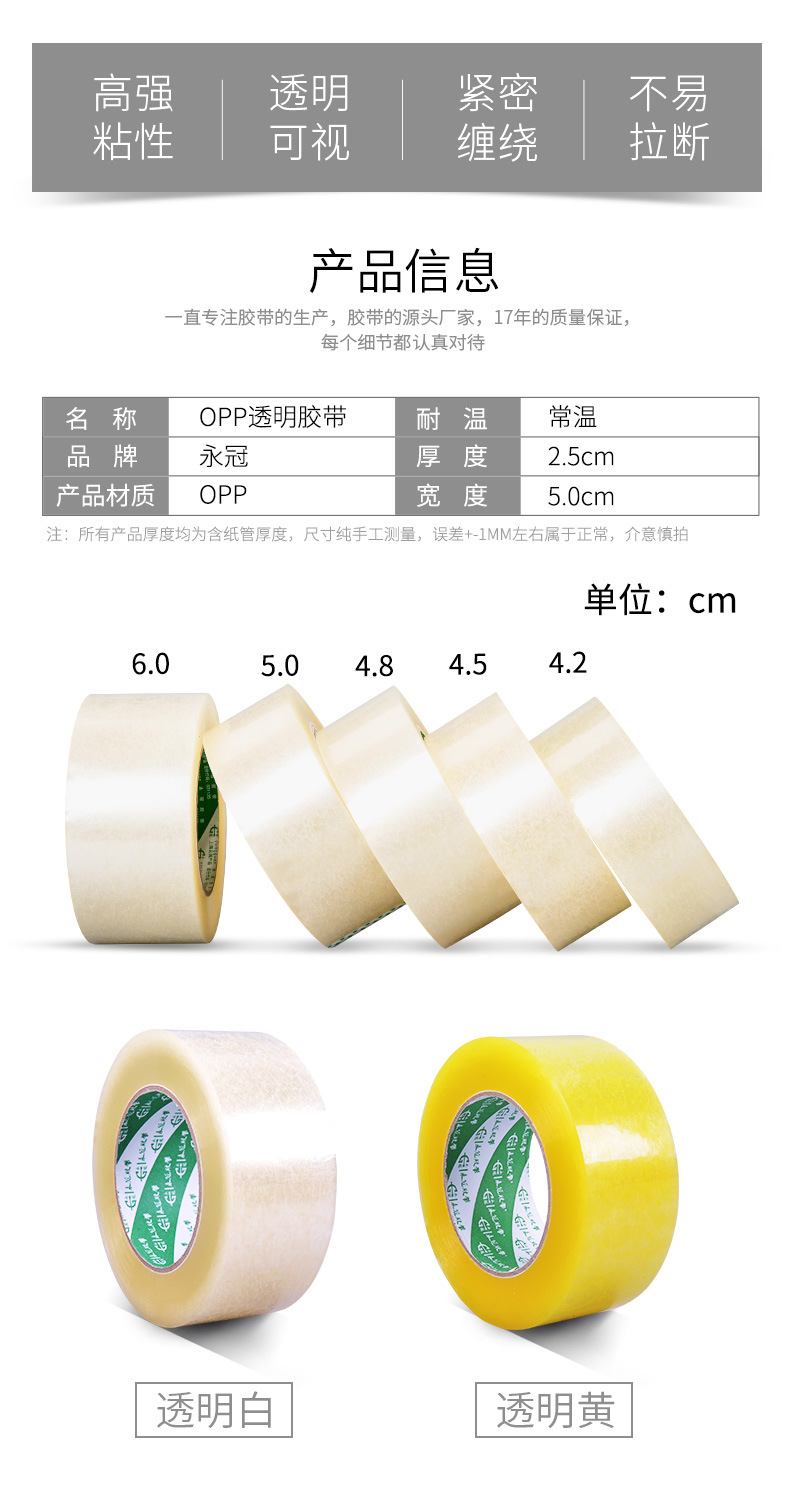 Yongguan 5.0cm transparent sealing tape e-commerce express packaging wide sealing OPP tape factory wholesale