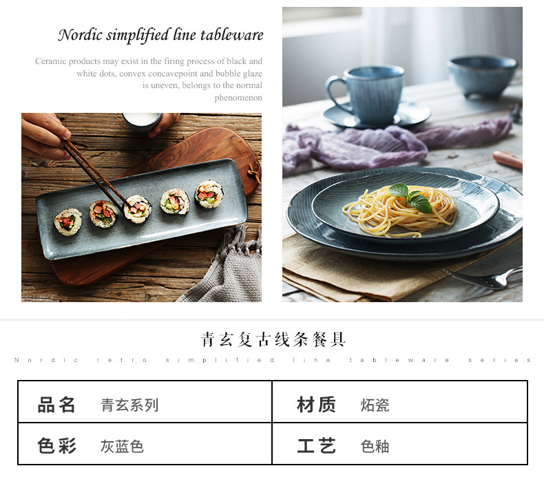 | Color | Mug,3.5999999999999996inch corner discs,Salad bowl,5.9inch noodle bowl defects,8inch plates,10inch disc defects,3.3inch square small flavor dish,4.7inch small foot rice bowl,8inch soup bowl defects,10.3inch large deep bowl defects,13inch extra large bowls and plates,14inch oval large disc defects,14.3inch blue and gray line long fish plate,240ml qingmeng line coffee cup,8.6inch line deep dish,11inch blue and gray line disc defects,480ml gray line mug blemish,10inch gray stripes disc defects,6.2inch gray hand-painted line salad bowl defects,Bluish spoon |
