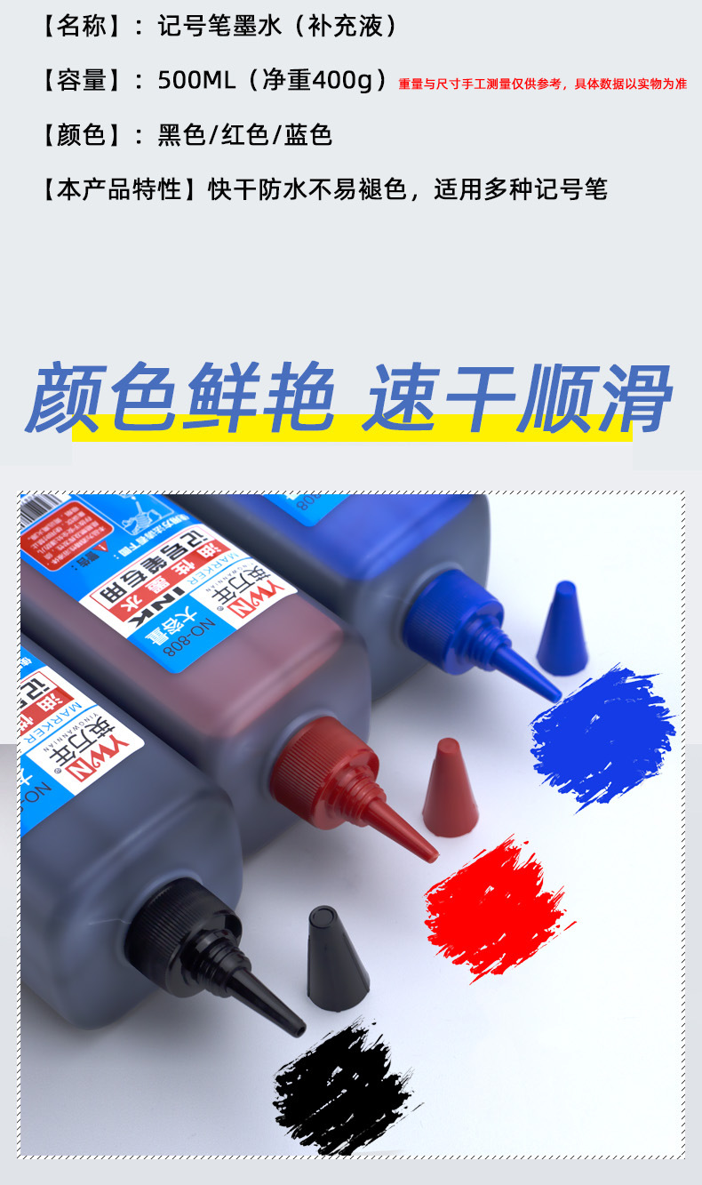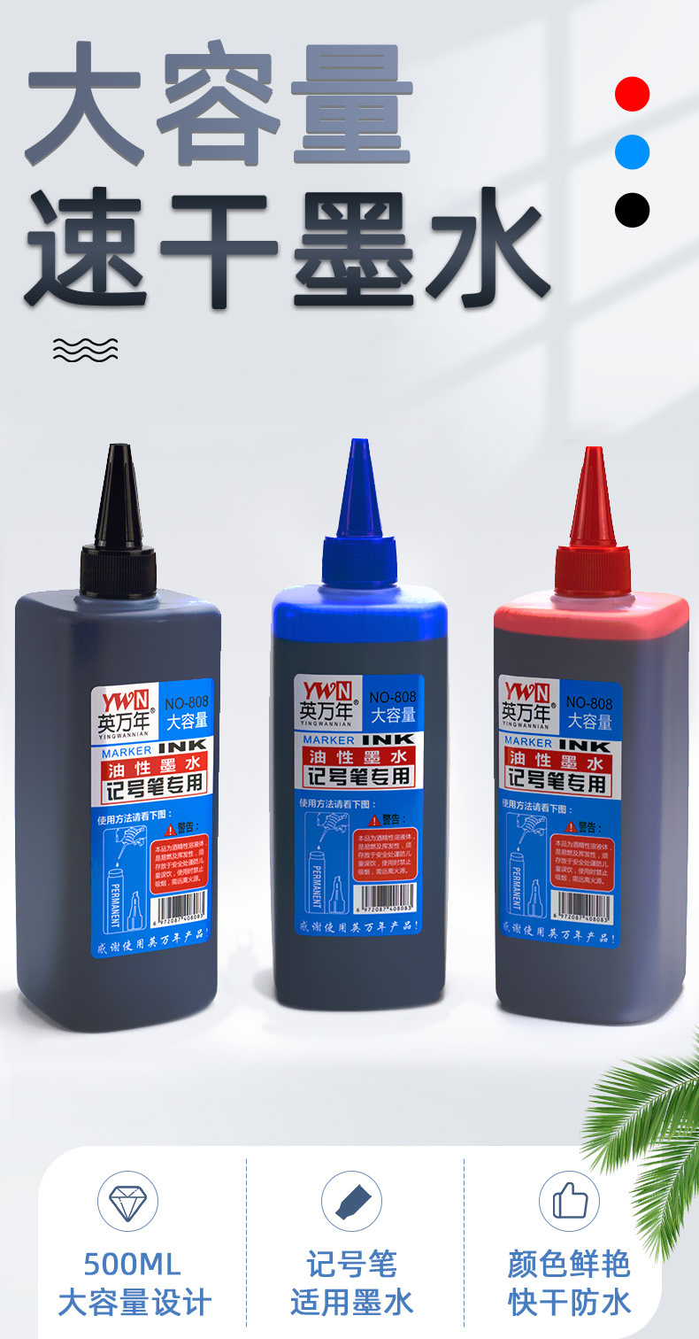 5 Bottle Free Shipping Marker Large Head Pen Ink Fill Add Ink Large Bottle 500 ml Capacity Mark Ink
