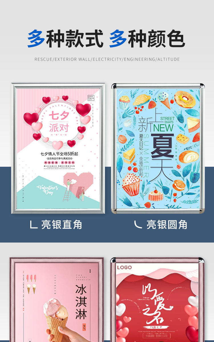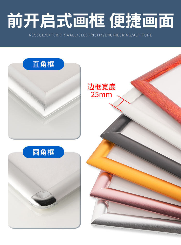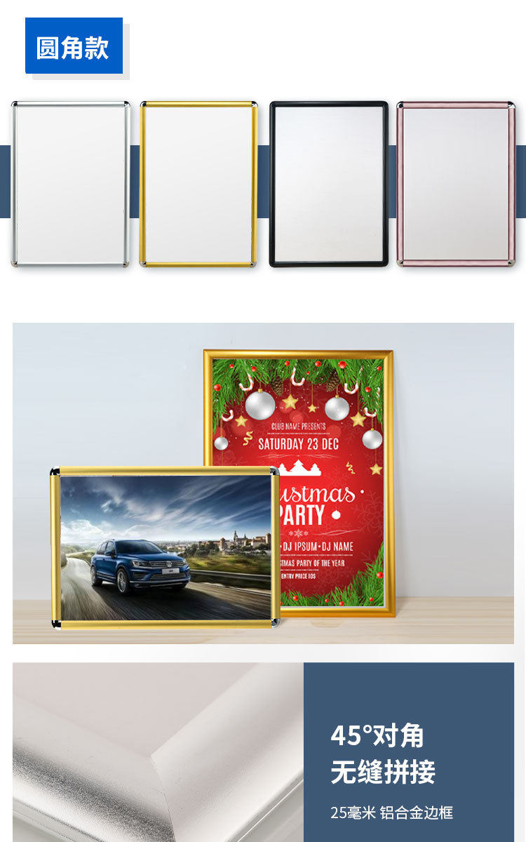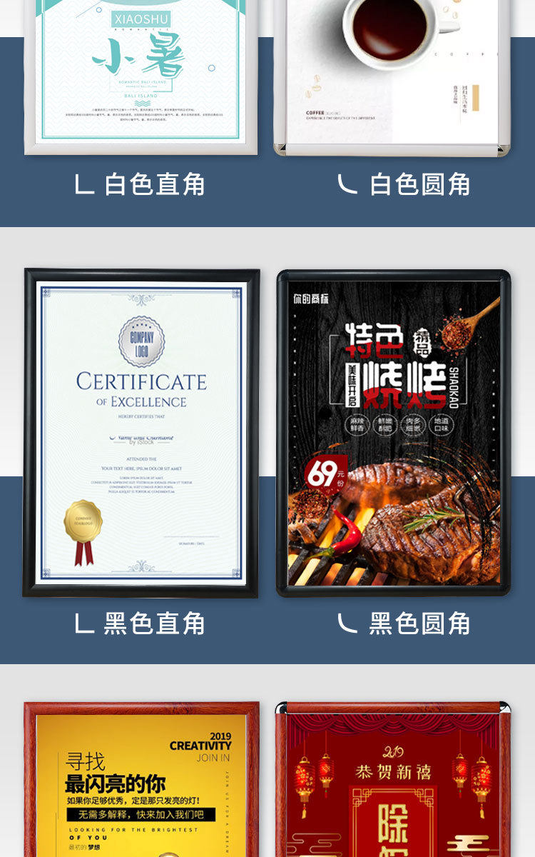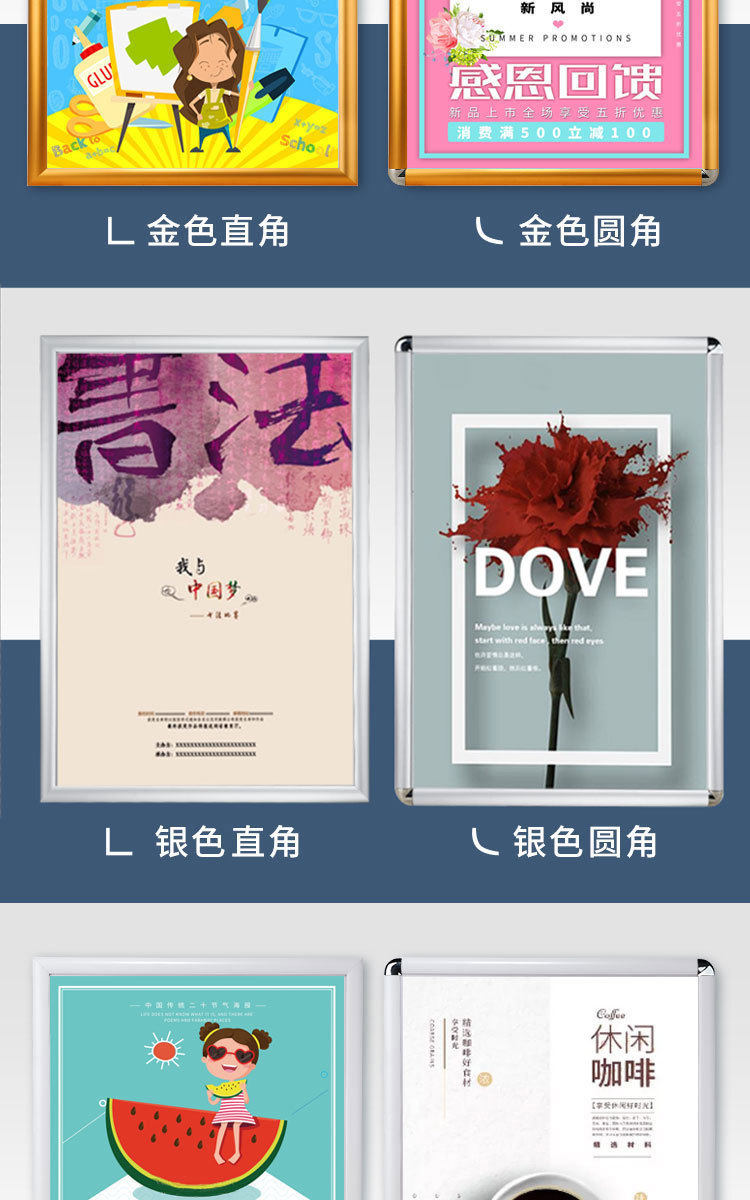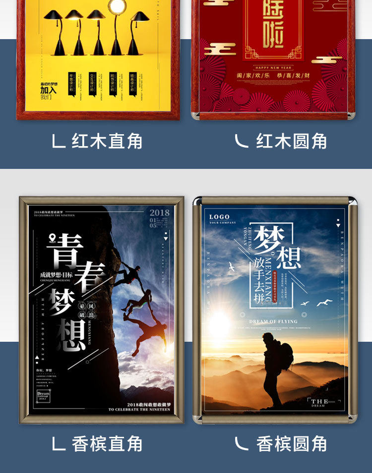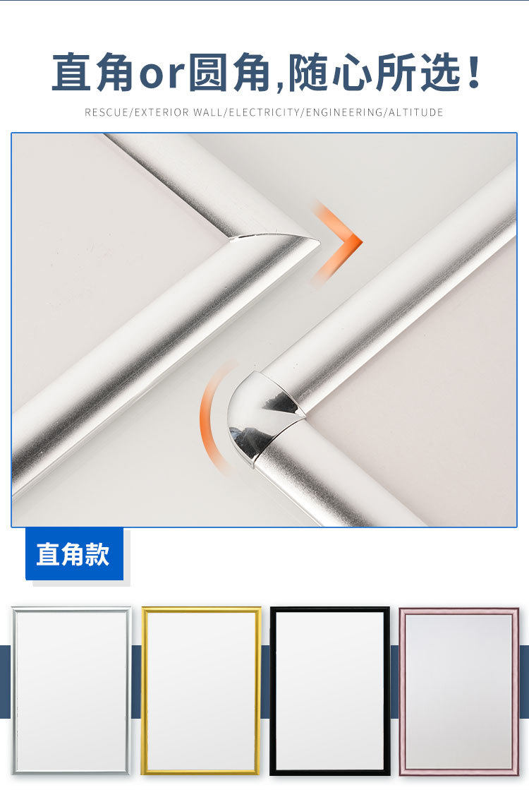 | Inner frame size | Silver Right Angle,Black right angle,Golden right angle,White right angle,Wood grain right angle,Bright Silver Right Angle,Silver fillet,Black rounded corners,Golden fillet,White fillet,Wood grain fillet,Bright Silver Fillet |