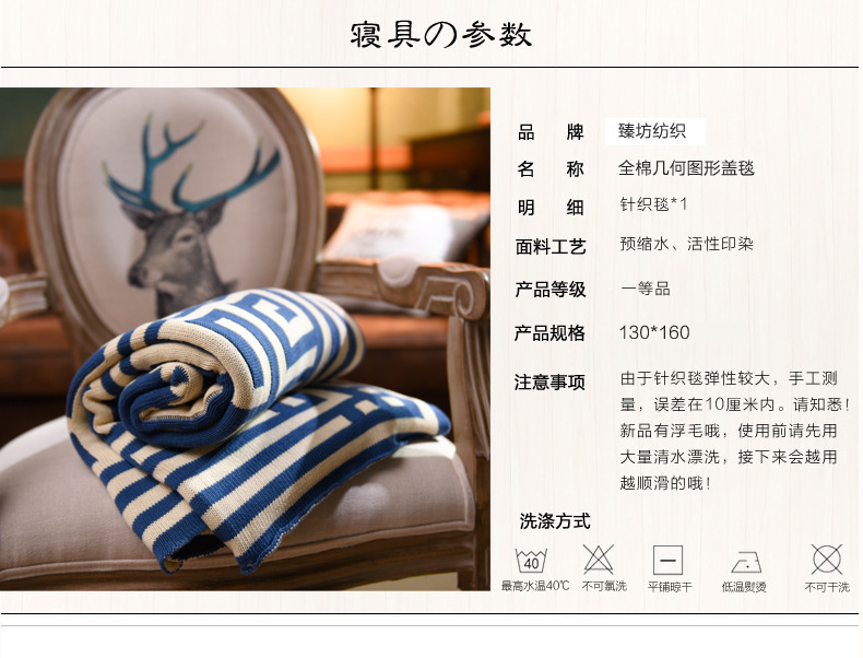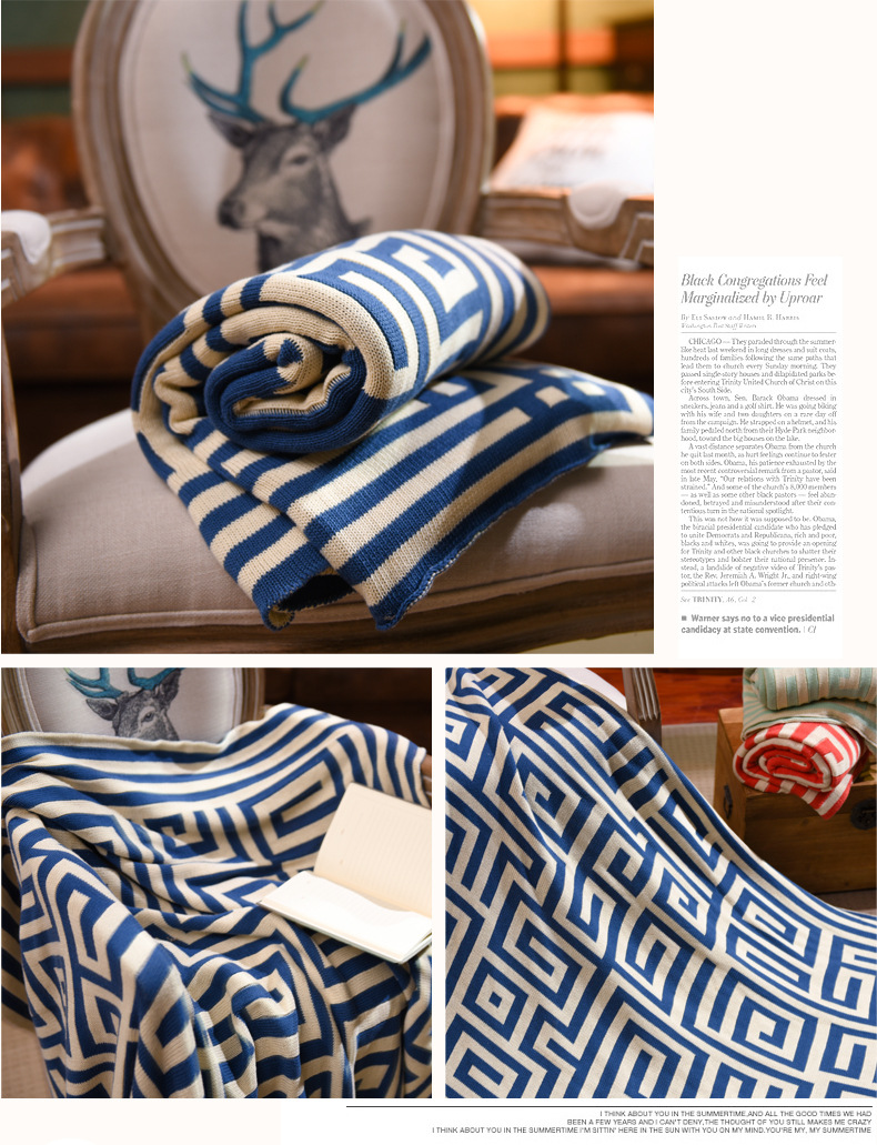 New Gift Blanket Jacquard Blanket Cotton Geometry Knitted Blanket Lunch Break Double-sided Air-conditioning Blanket