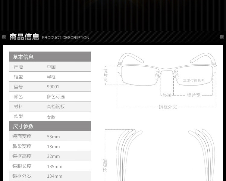 | Frame color | Purple,Black,Wine red,Pink,Pink beige,Black powder |