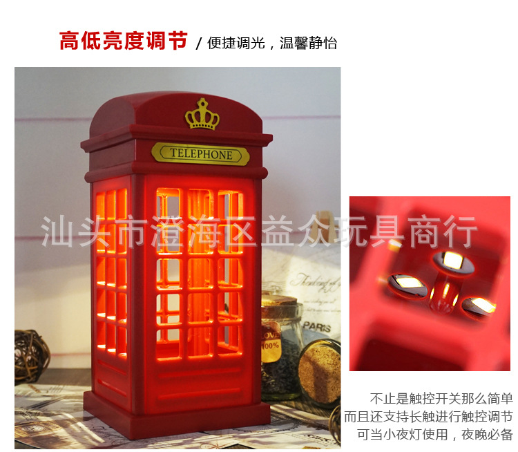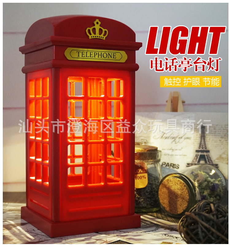 European British Telephone Booth Table Lamp, Unique Charging Led Adjustable Touch Table Lamp, Night Light Specially Designed for Export