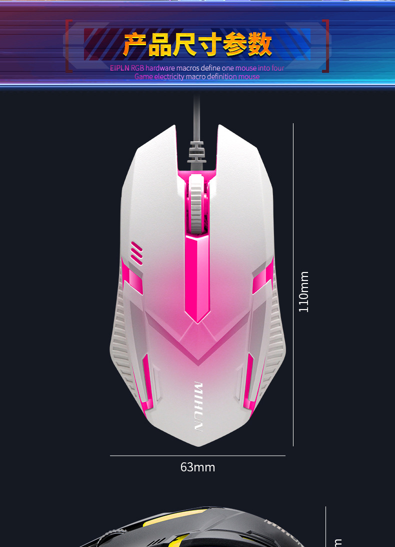 Mi Soul M103 Notebook Desk Machine Office Business usb Wired Luminous Computer Mouse Foreign Trade English Packaging