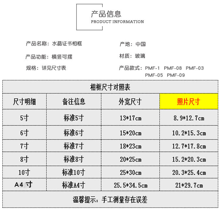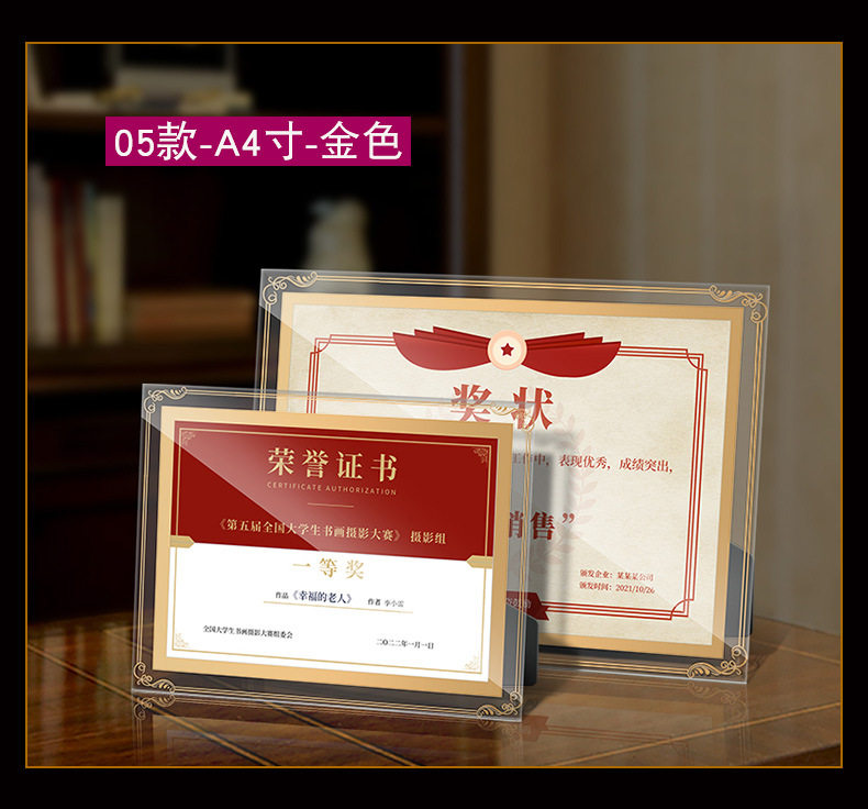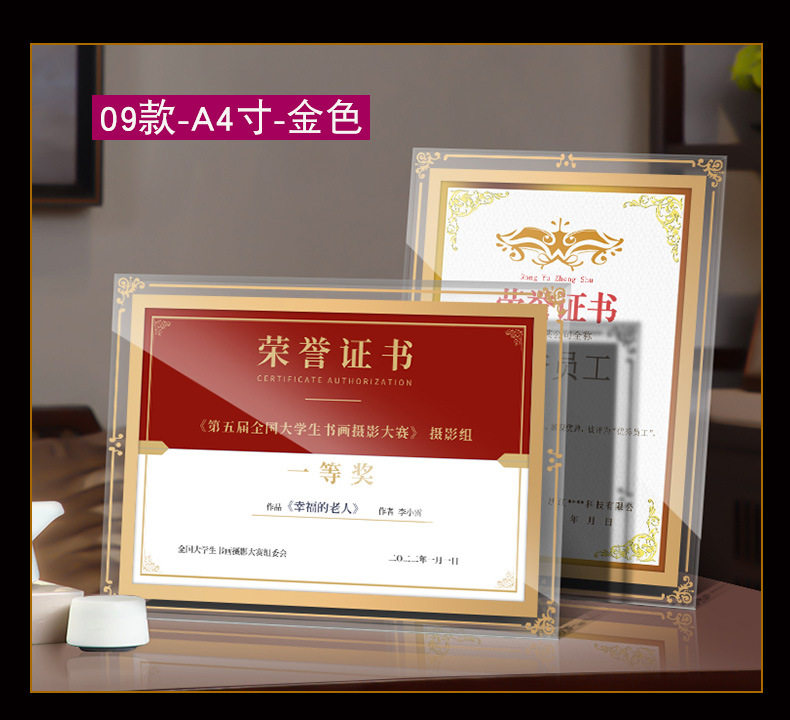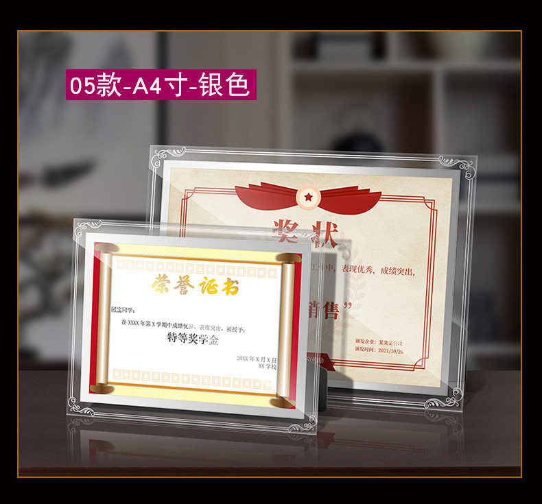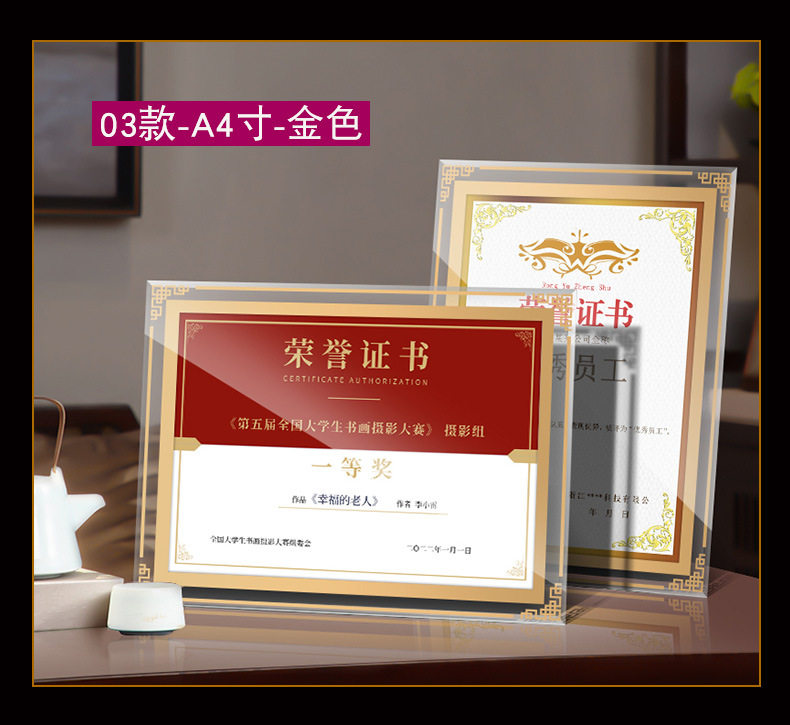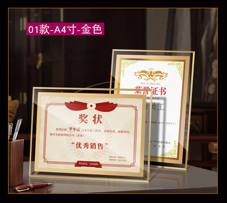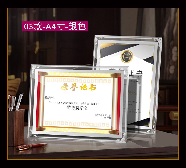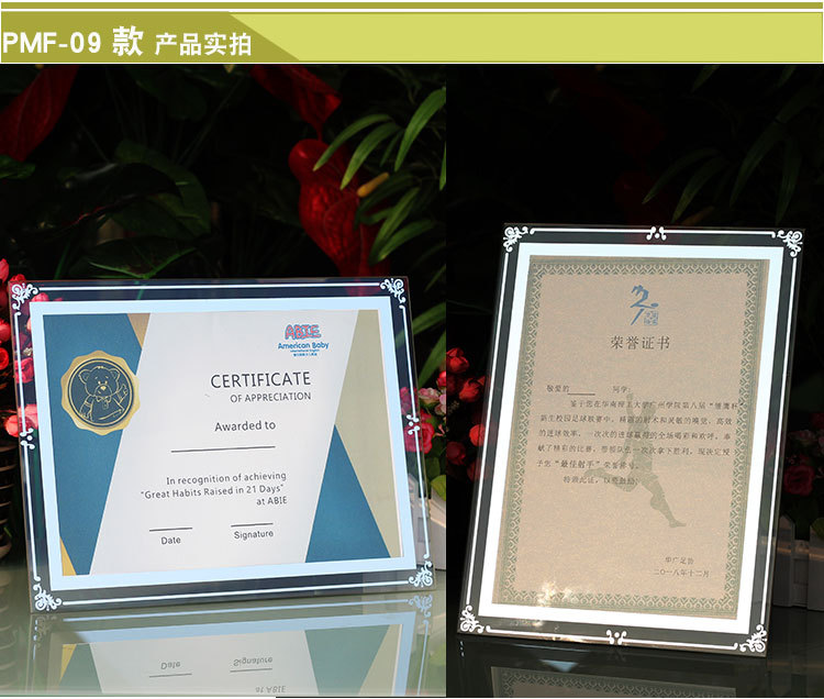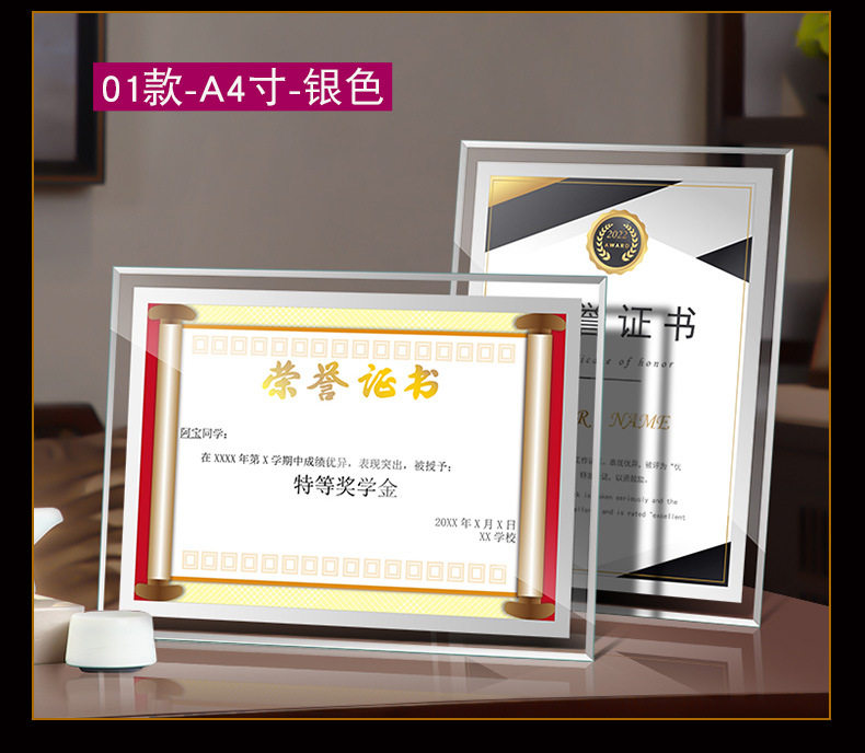 Certificate Display Frame Glass Honor Certificate Frame Crystal Certificate Framing Frame a 4inch Table Photo Frame Wholesale Picture Frame