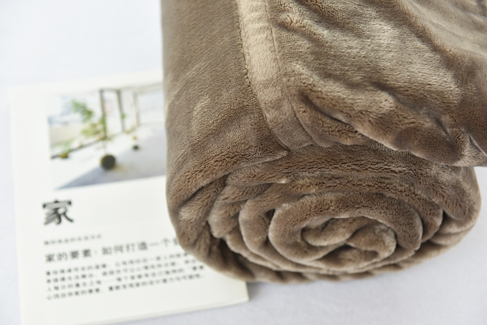 Japanese-style double-layer non-printed thermal fiber thick blanket flannel coral fleece solid color thick blanket