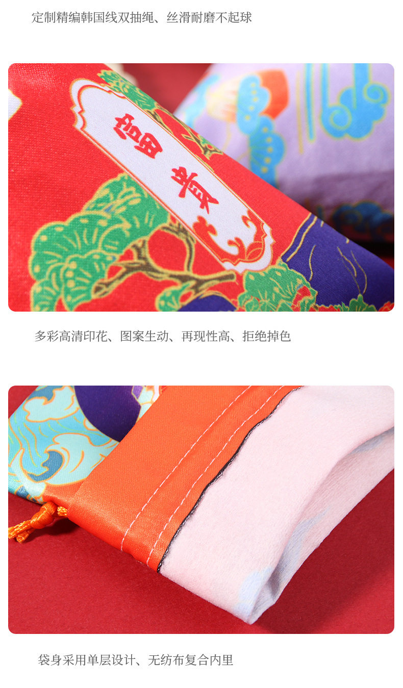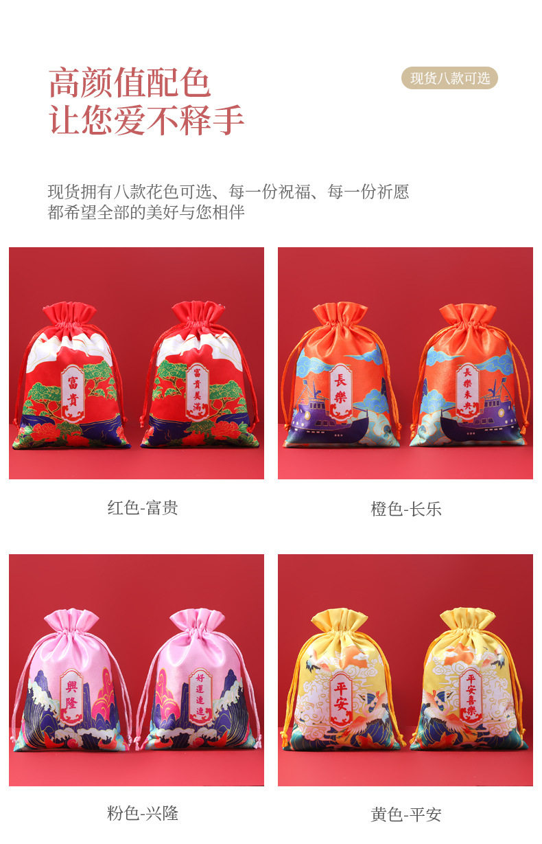 | Color | Red wealth,Yellow peace,Lake blue smooth,Green health,Purple luck,Mud gold nafu,Pink booming,Orange changle |