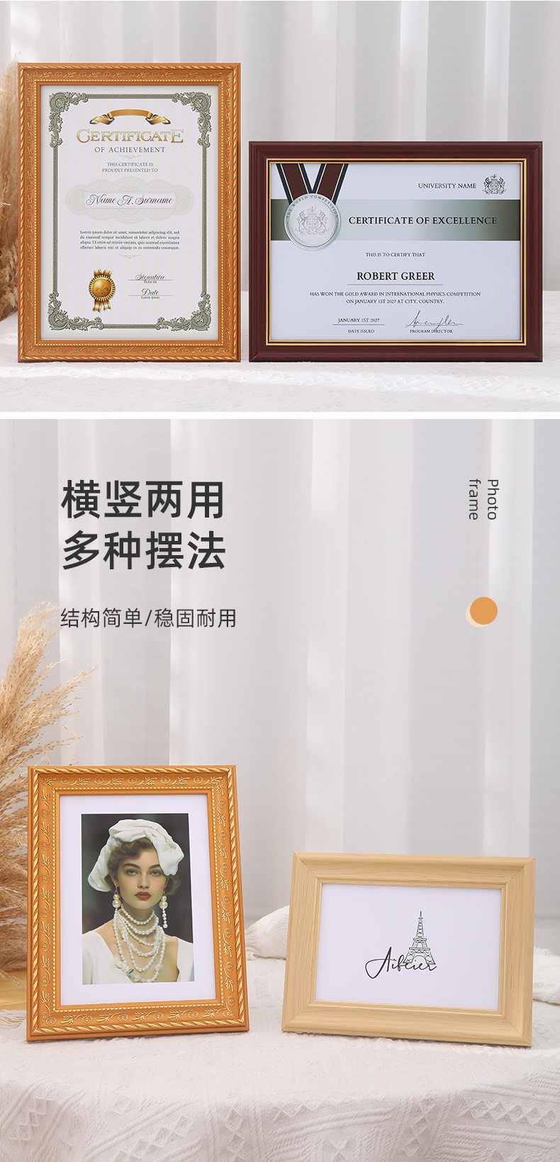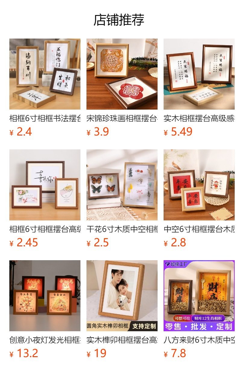 | Frame size | 5 inch size 9*13cm,6 inch size 10*15cm,7 inch size 13*18cm,8 inch size 15*20cm,10 inch size 20*25cm,A4 inner size 21*29.7cm,A3 inner size 29.7*42cm |