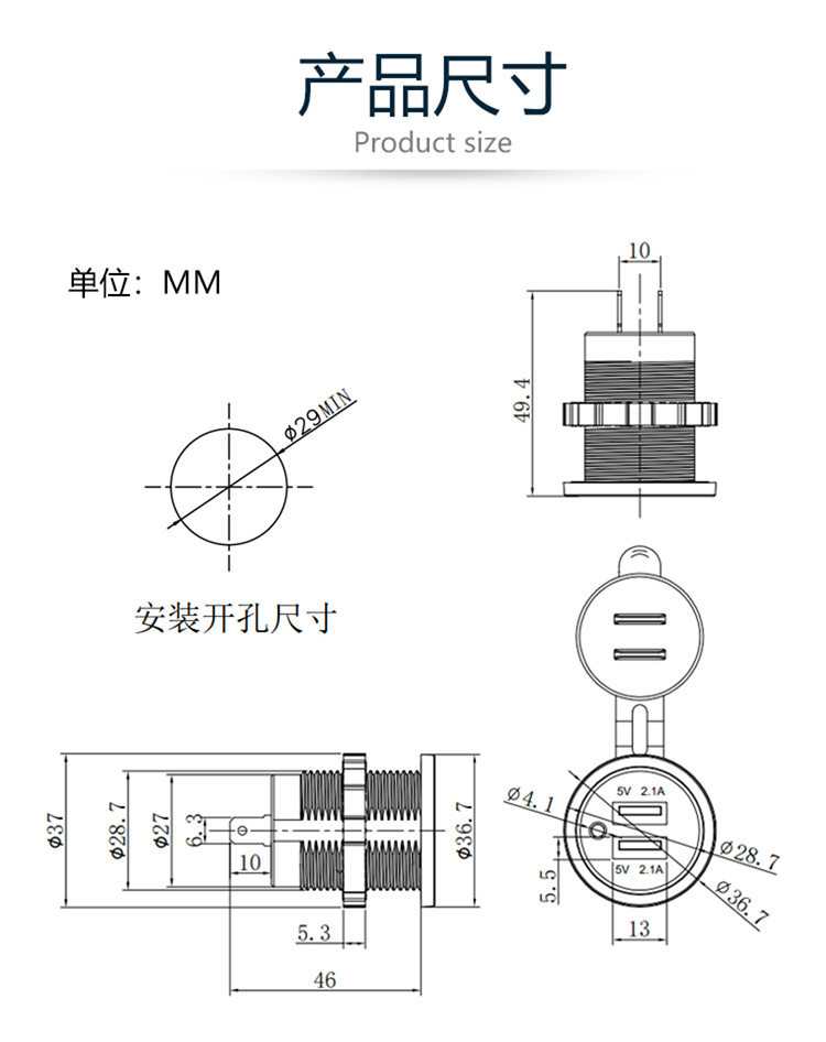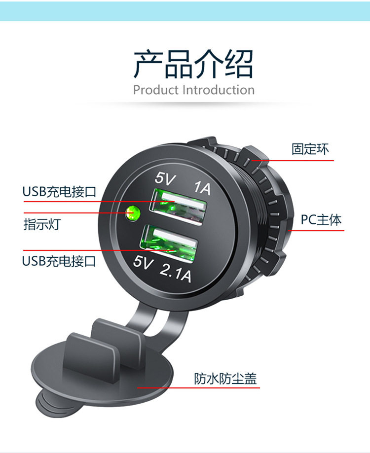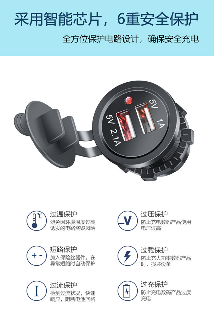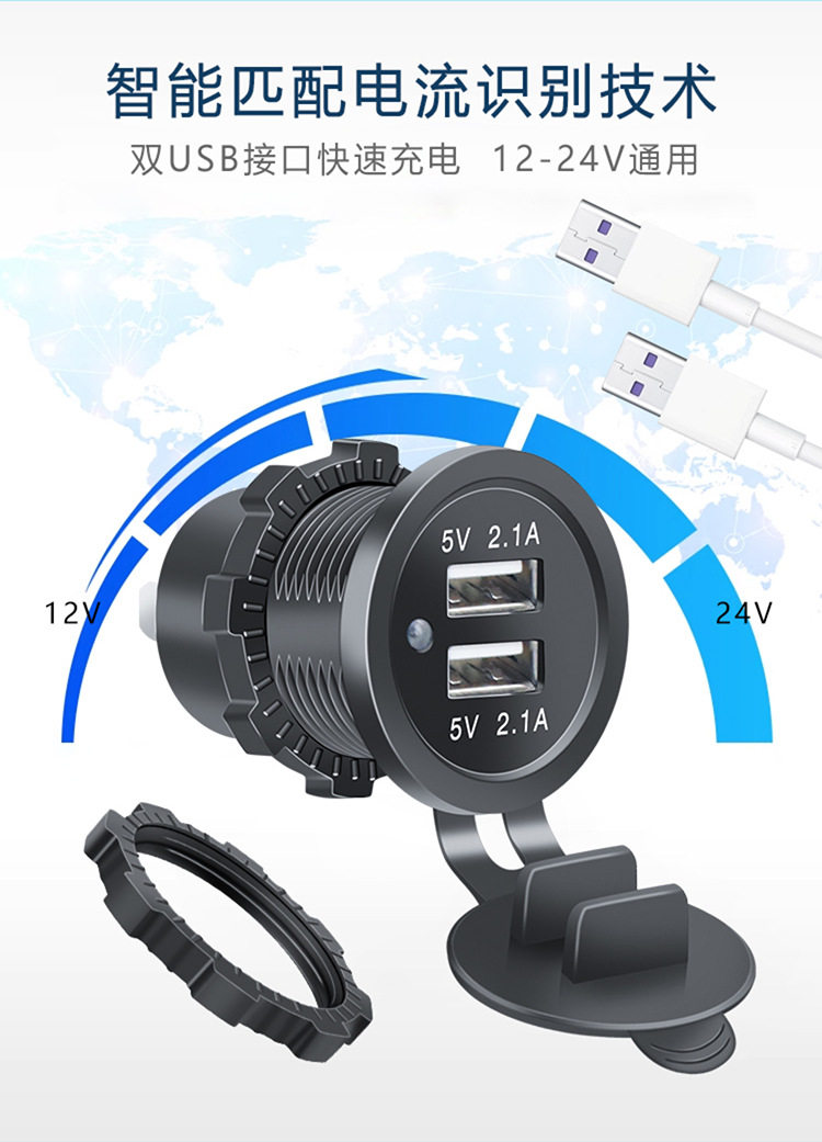 | Model | Dual usb blue indicator light 3.1a,Dual usb red indicator light 3.1a,Dual usb green indicator light 3.1a,Dual usb blue indicator light 4.2a,Dual usb red indicator light 4.2a,Dual usb green indicator light 4.2a |