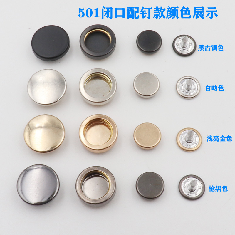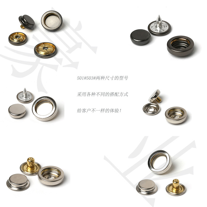 | Specifications and models | 501 through hole Silver,501 through hole Gun Color,501 through hole bronze,501 through hole painted black,501 Through Hole Guangdong Gold,501 closed snap button |