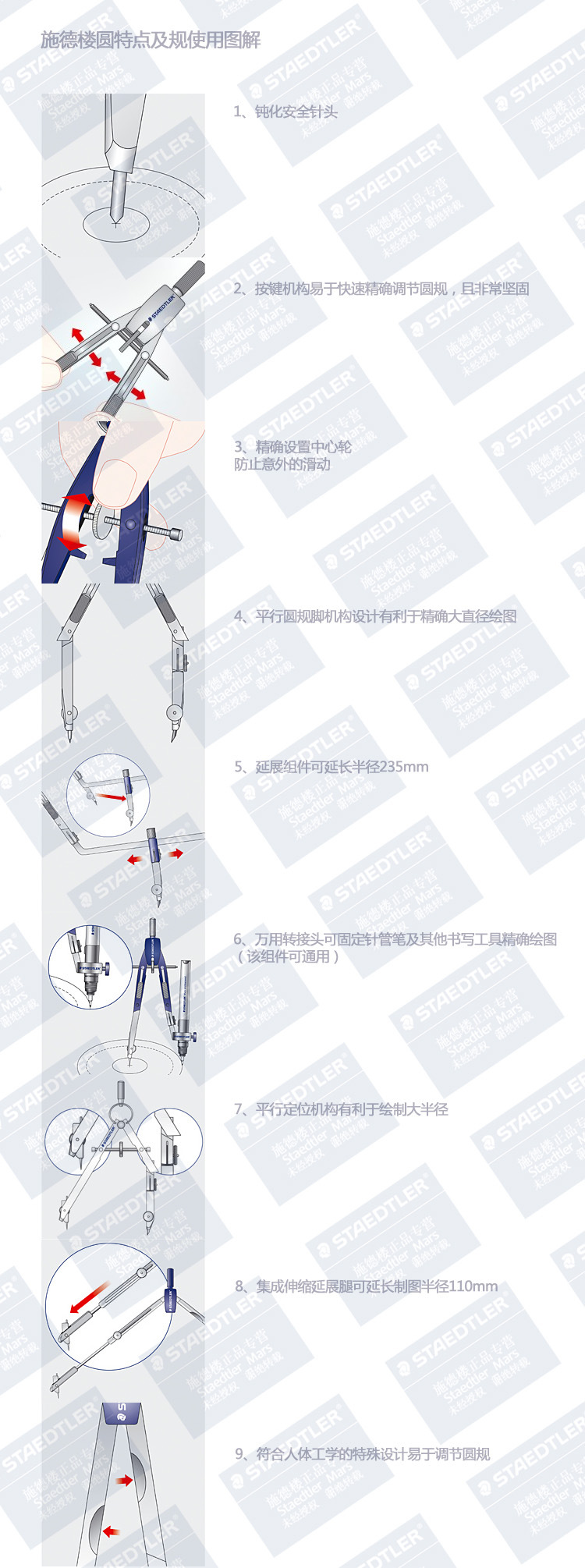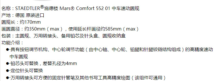 German Staedtler Staedtler 55201 High-Precision Speed Can Extend the Central Car Professional Engineering Drawing Compass