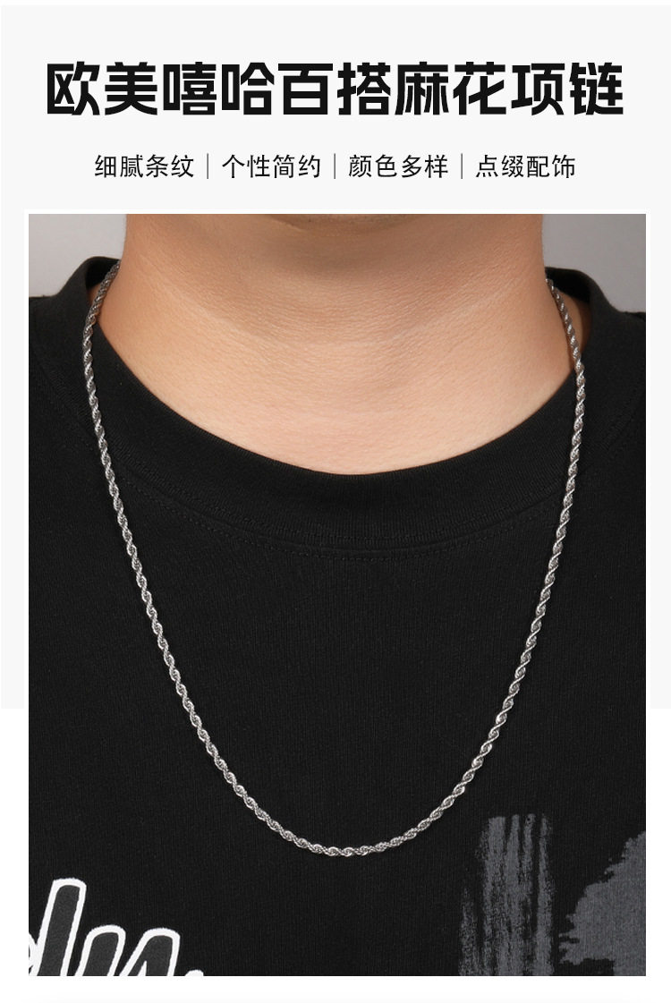 European and American Necklaces for Boys Hip-Hop Versatile Stainless Steel Gold Twist Chain Niche Plain Chain Twisted Rope Chain Jewelry Wholesale