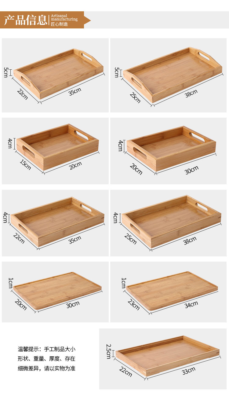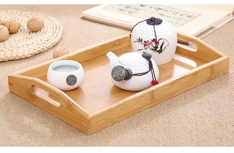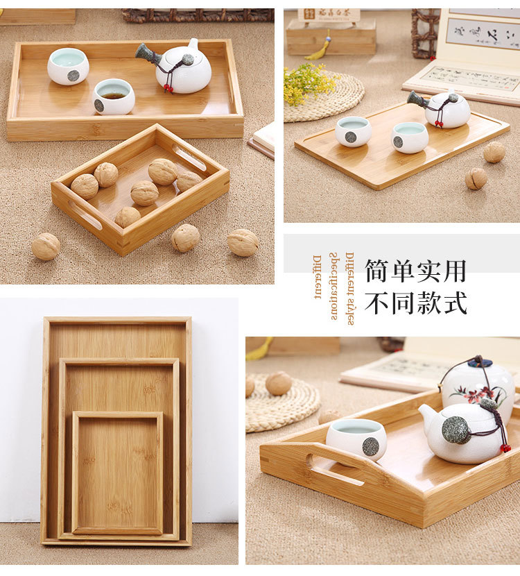Japanese bamboo rectangular tea tray household wooden plate fruit bread solid wood tray spot wholesale
