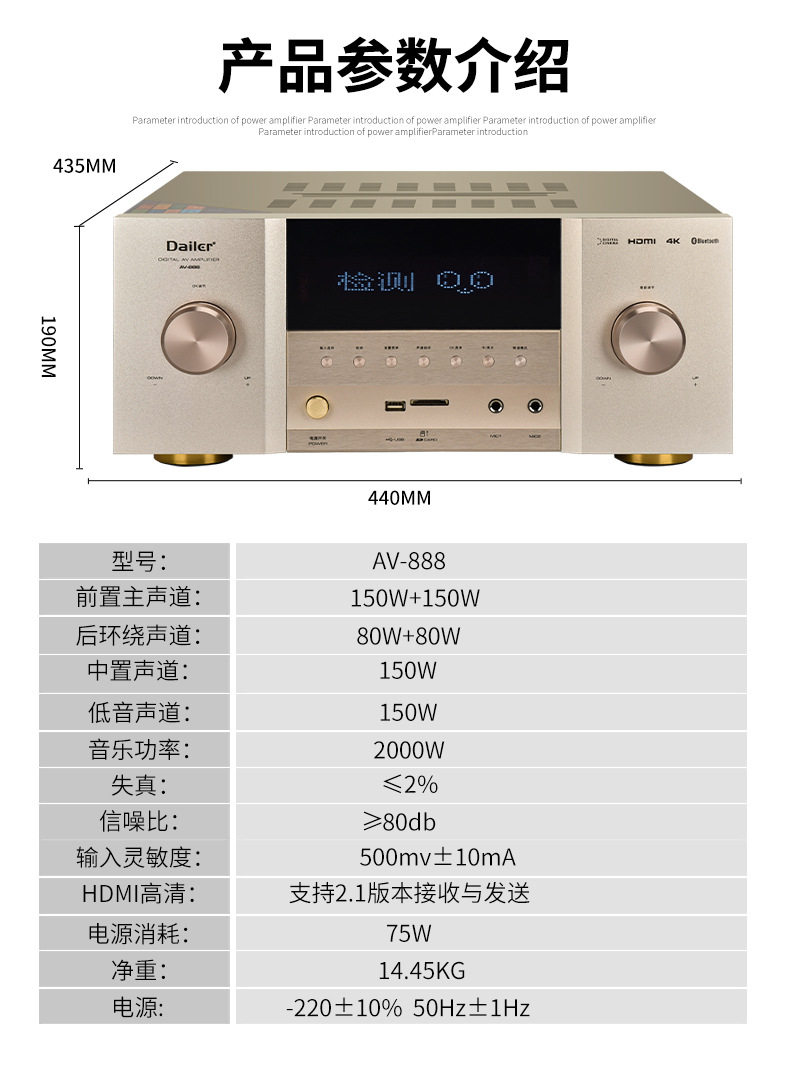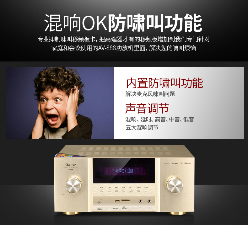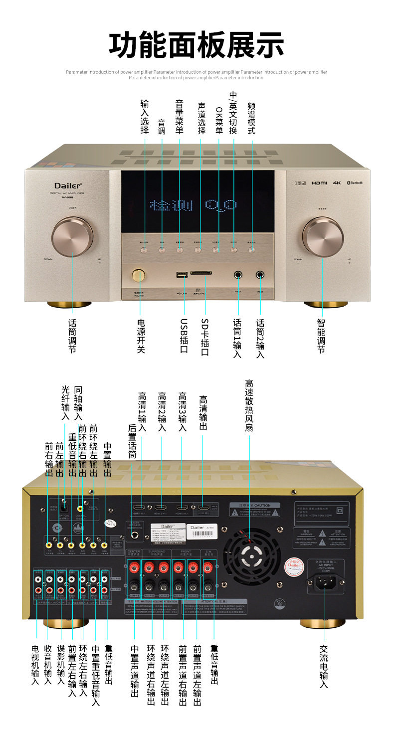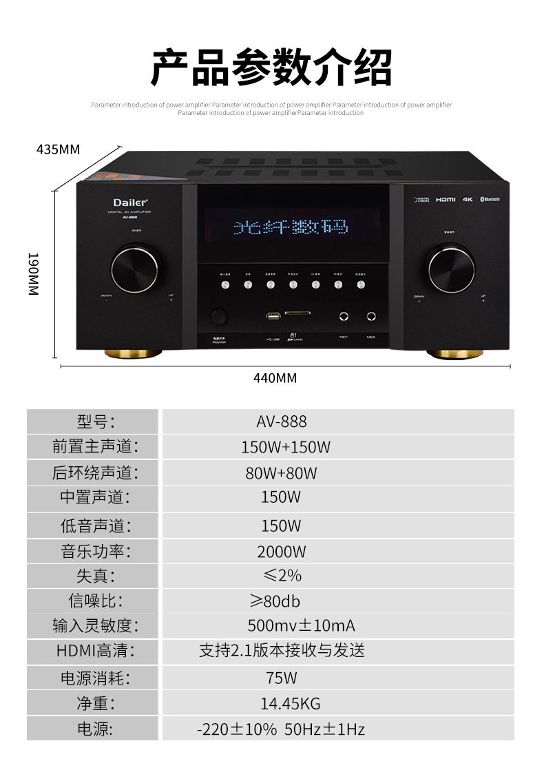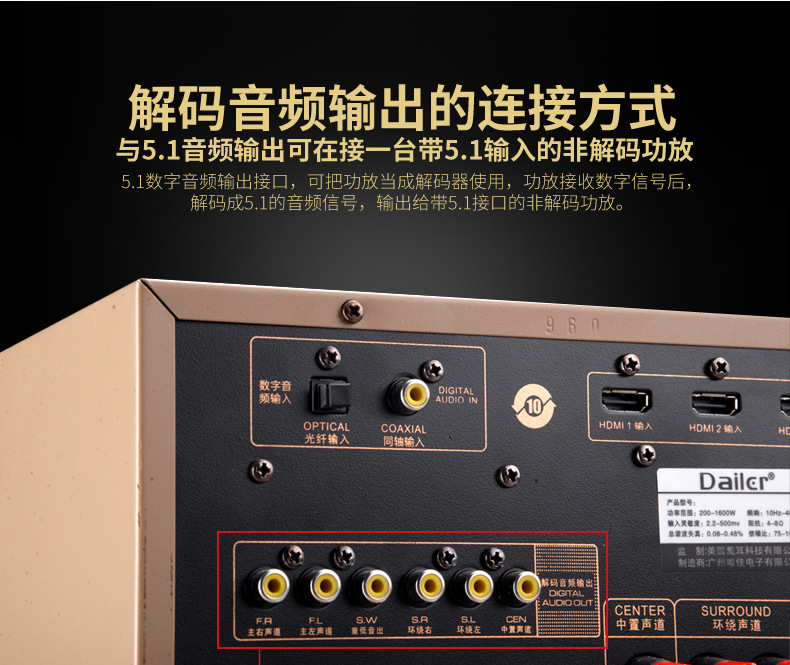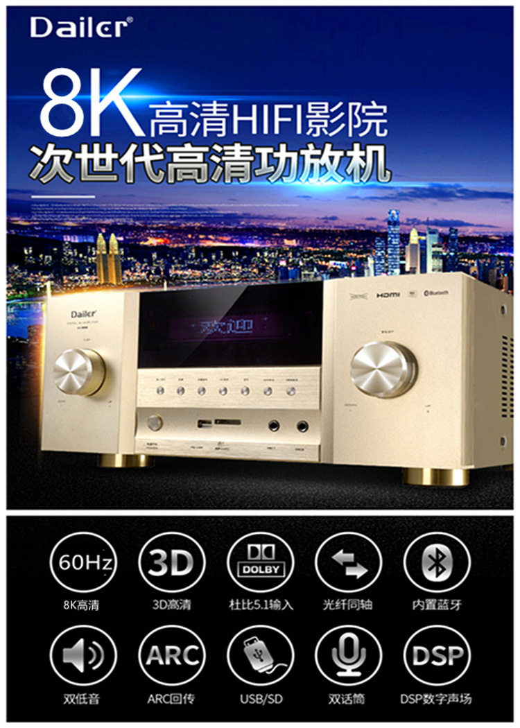 5.1 High-Power Home Theater Amplifier Optical Brazing Coaxial 8K High-Definition 110V220V Home Karaoke Amplifier