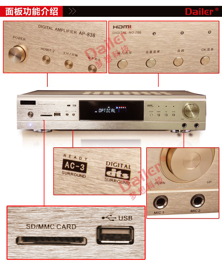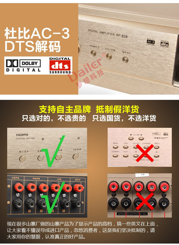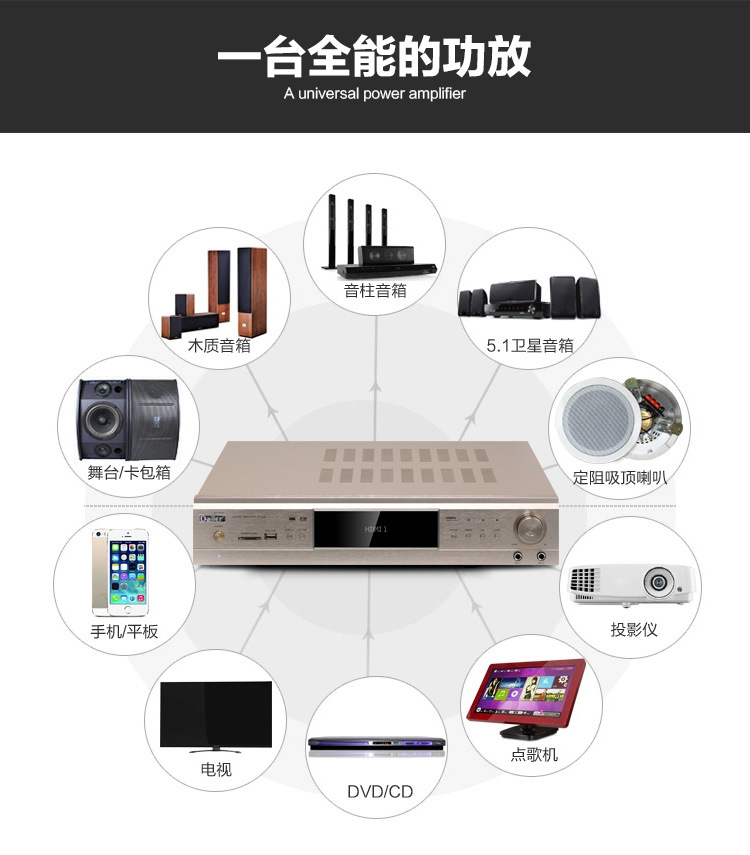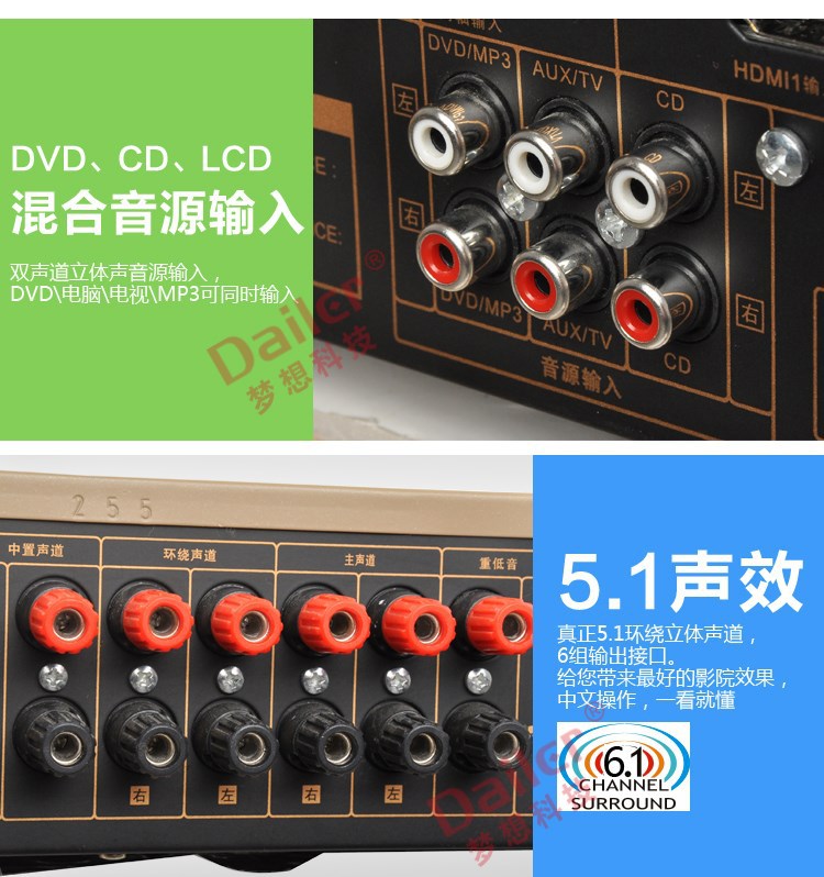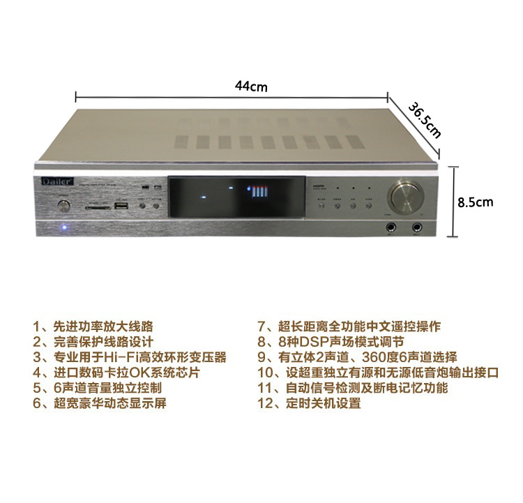 True 5.1Dts Dolby Surround 4K Hd Decoding Bluetooth USB Lossless Amplifier Aluminum Alloy Home Amplifier