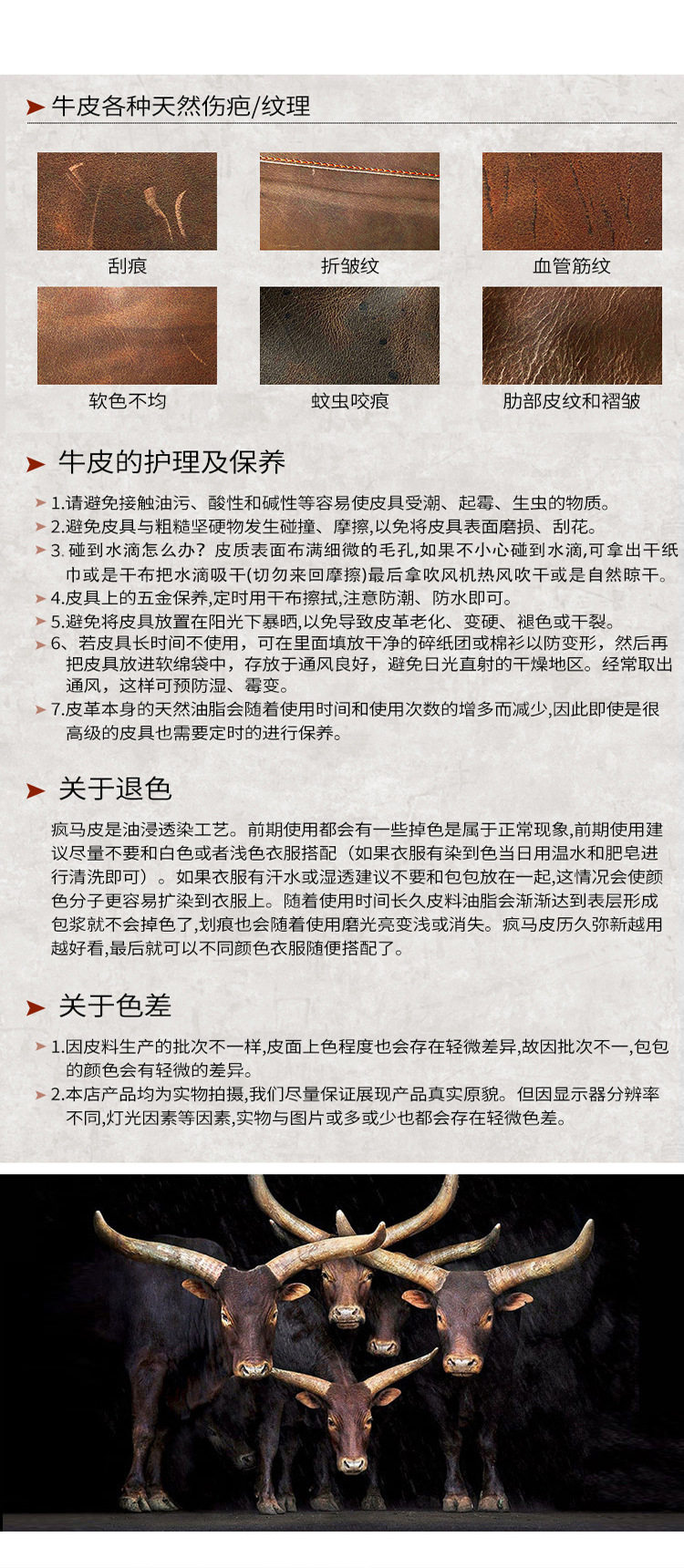 | Color | Light brown [crazy horse first layer cowhide],Dark brown [crazy horse first layer cowhide],Green [crazy horse first layer cowhide],Blue [crazy horse first layer cowhide],Black [crazy horse first layer cowhide],Red brown [crazy horse first layer cowhide],Yellow [frosted first layer cowhide] |