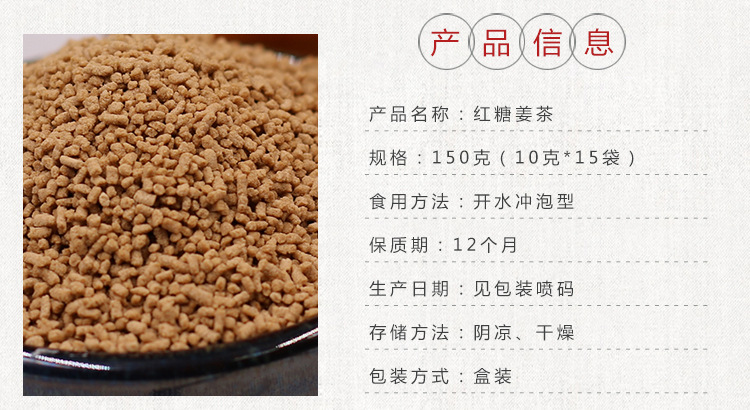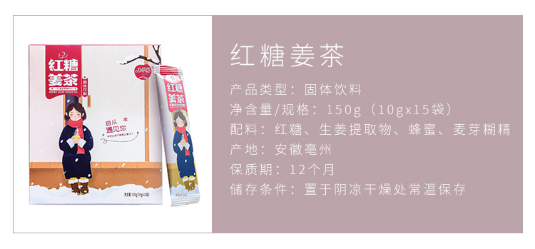 | Packaging specifications | Brown sugar ginger tea Classic 10g * 15 bags,Brown sugar ginger tea cartoon 10g * 15 bags,Brown sugar ginger tea new 10g * 10 bags |