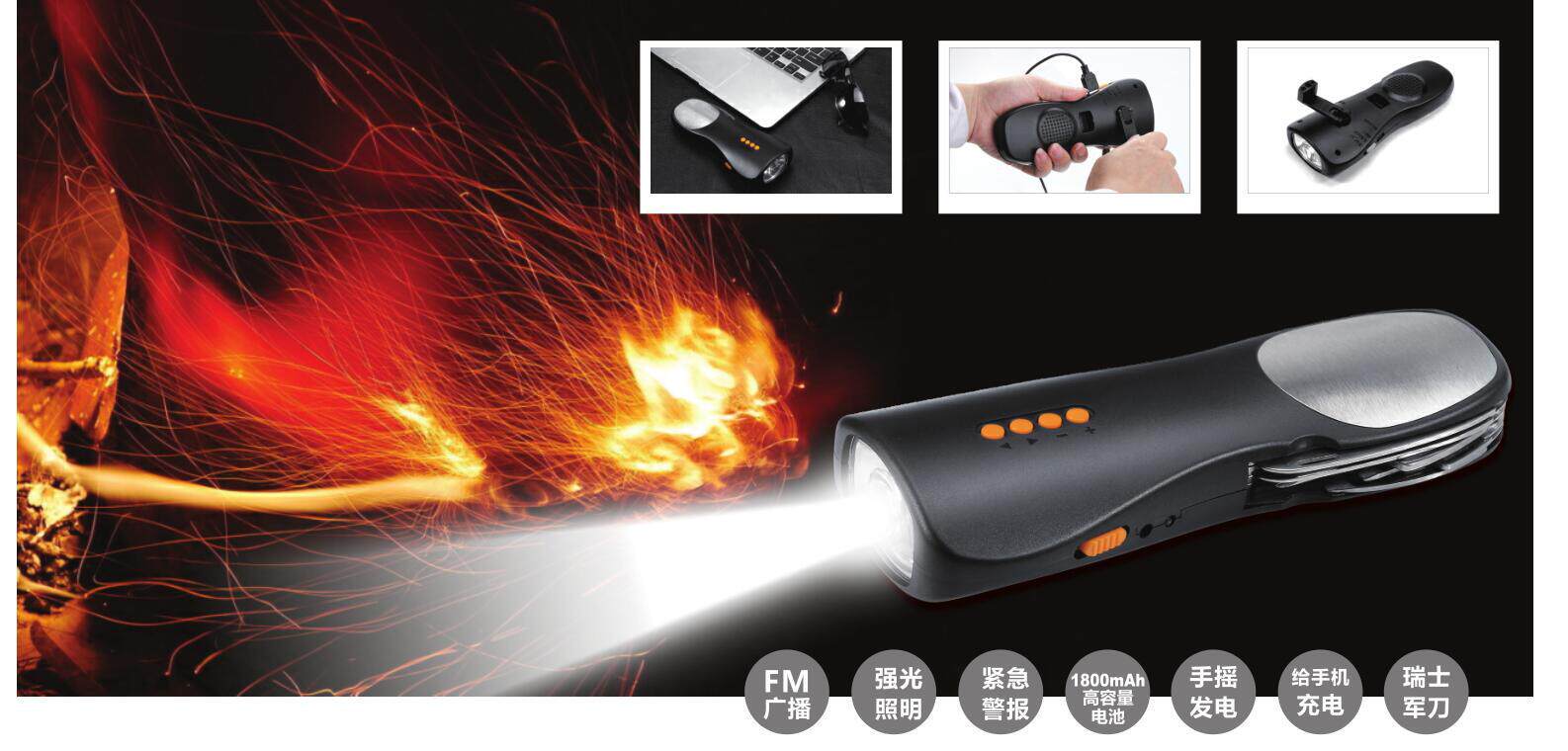 Hand-Cranked Radio Flashlight Emergency Charging Outdoor Lighting Emergency Disaster Relief Outdoor Tool Knife
