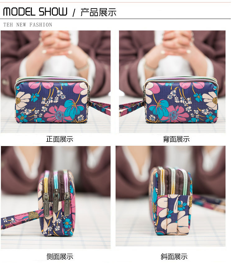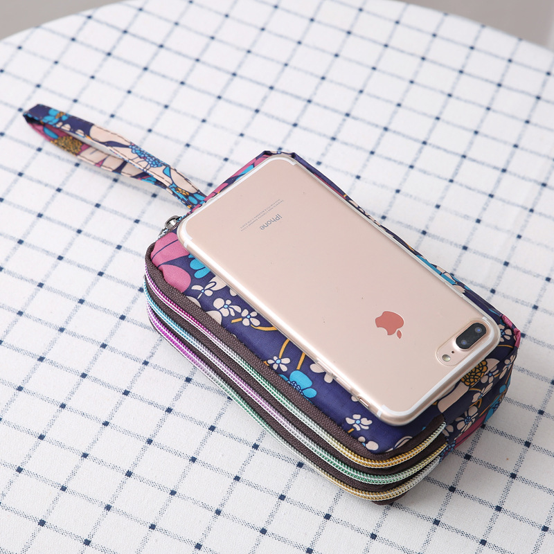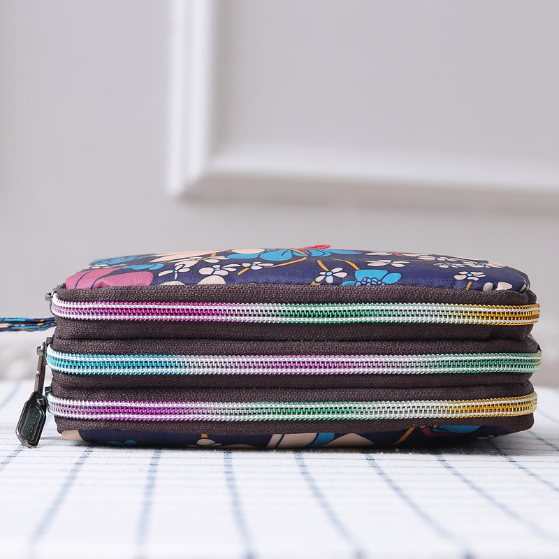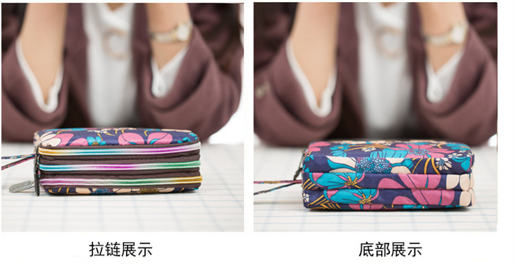 Women's Clutch Canvas Art Three-Layer Long Wallet Women's Handbag Large Capacity Key Coin Purse Casual Mobile Phone Bag