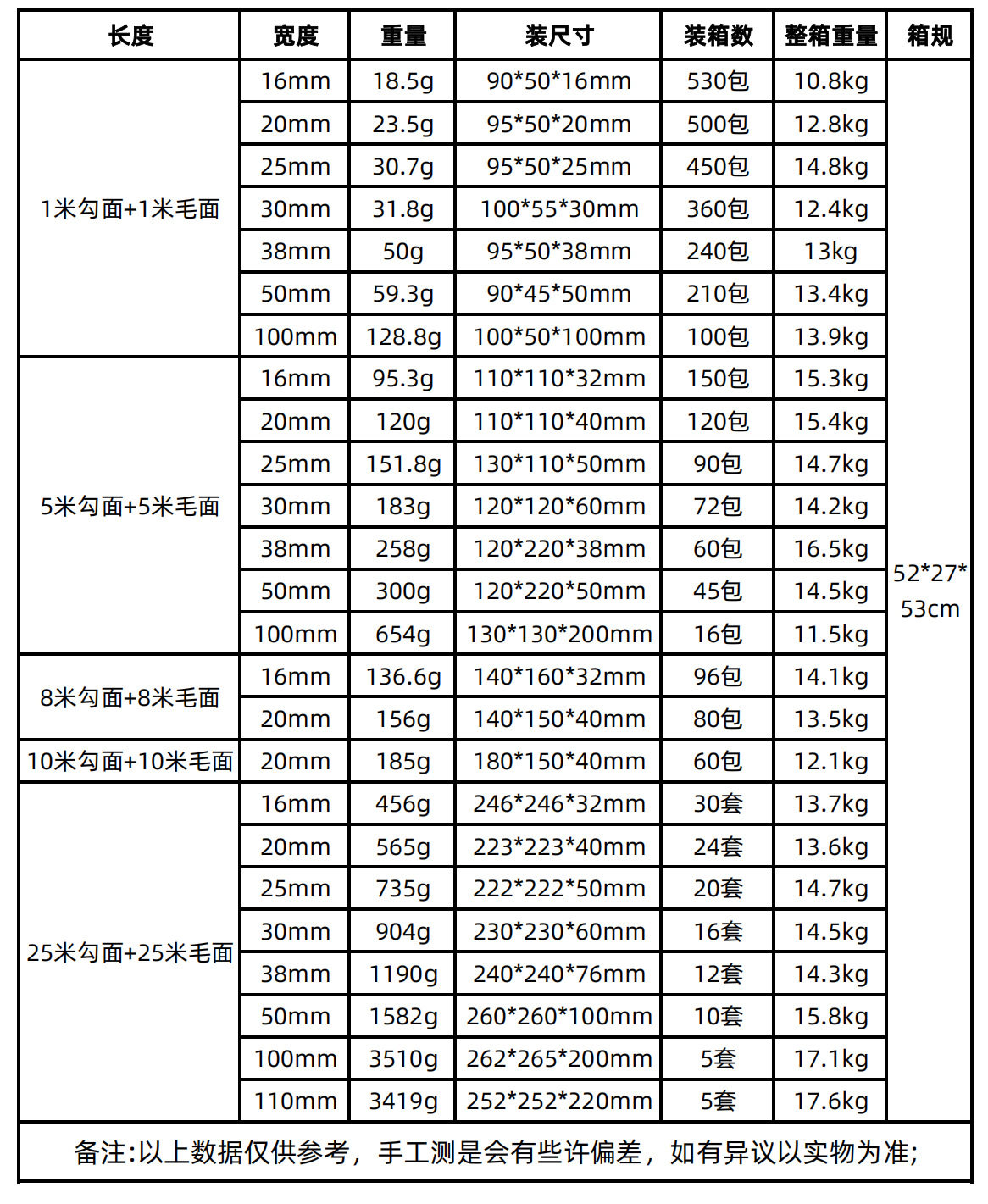 | Specification model | Black*16mm [ 1m hooks + 1m hair],Black*16mm [ 5m hooks + 5m hair],Black*16mm [ 8m hooks + 8m hair],Black*16mm [ 25m hooks + 25m hair],Black*20mm [ 1m hooks + 1m hair],Black*20mm [ 5m hooks + 5m hair],Black*20mm [ 8m hooks + 8m hair],Black*20mm [ 10m hooks + 10m hair],Black*20mm [ 25m hooks + 25m hair],Black*25mm [ 1m hooks + 1m hair],Black*25mm [ 5m hooks + 5m hair],Black*25mm [ 25m hooks + 25m hair],Black*30mm [ 1m hooks + 1m hair],Black*30mm [ 5m hooks + 5m hair],Black*30mm [ 25m hooks + 25m hair],Black*38mm [ 1m hooks + 1m hair],Black*38mm [ 5m hooks + 5m hair],Black*38mm [ 25m hooks + 25m hair],Black*50mm [ 1m hooks + 1m hair],Black*50mm [ 5m hooks + 5m hair],Black*50mm [ 25m hooks + 25m hair],Black*100mm [ 1m hooks + 1m hair],Black*100mm [ 5m hooks + 5m hair],Black*100mm [ 25m hooks + 25m hair],Black*110mm [ 25m hooks + 25m hair],White*16mm [ 1m hooks + 1m hair],White*16mm [ 5m hooks + 5m hair],White*16mm [ 8m hooks + 8m hair],White*16mm [ 25m hooks + 25m hair],White*20mm [ 1m hooks + 1m hair],White*20mm [ 5m hooks + 5m hair],White*20mm [ 8m hooks + 8m hair],White*20mm [ 10m hooks + 10m hair],White*20mm [ 25m hooks + 25m hair],White*25mm [ 1m hooks + 1m hair],White*25mm [ 5m hooks + 5m hair],White*25mm [ 25m hooks + 25m hair],White*30mm [ 1m hooks + 1m hair],White*30mm [ 5m hooks + 5m hair],White*30mm [ 25m hooks + 25m hair],White*38mm [ 1m hooks + 1m hair],White*38mm [ 5m hooks + 5m hair],White*38mm [ 25m hooks + 25m hair],White*50mm [ 1m hooks + 1m hair],White*50mm [ 5m hooks + 5m hair],White*50mm [ 25m hooks + 25m hair],White*100mm [ 1m hooks + 1m hair],White*100mm [ 5m hooks + 5m hair],White*100mm [ 25m hooks + 25m hair],White*110mm [ 25m hooks + 25m hair] |