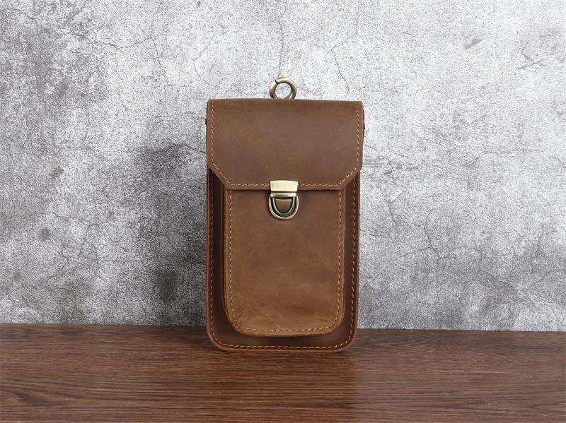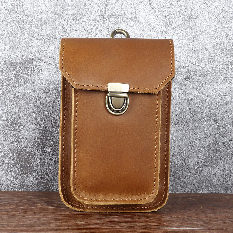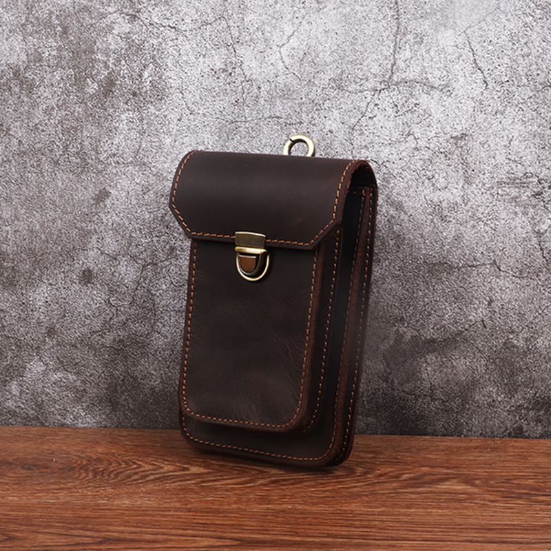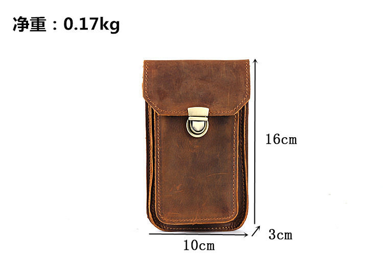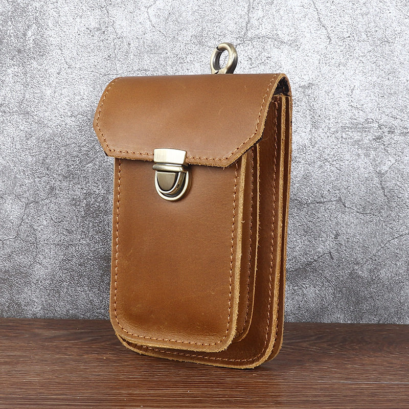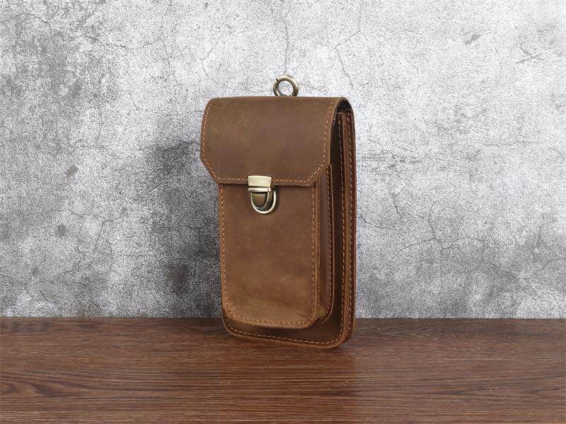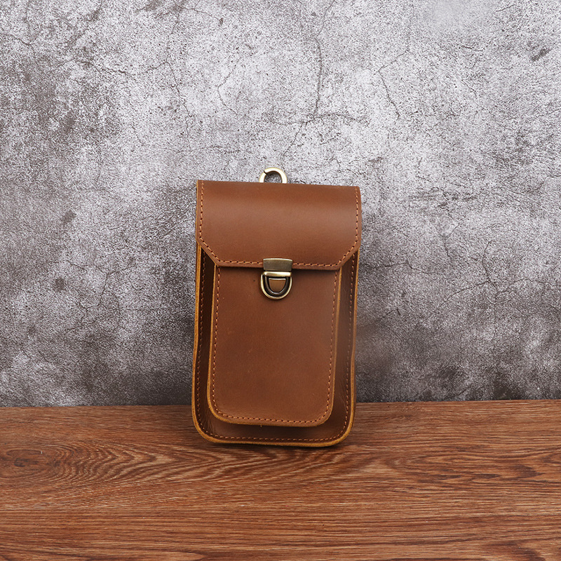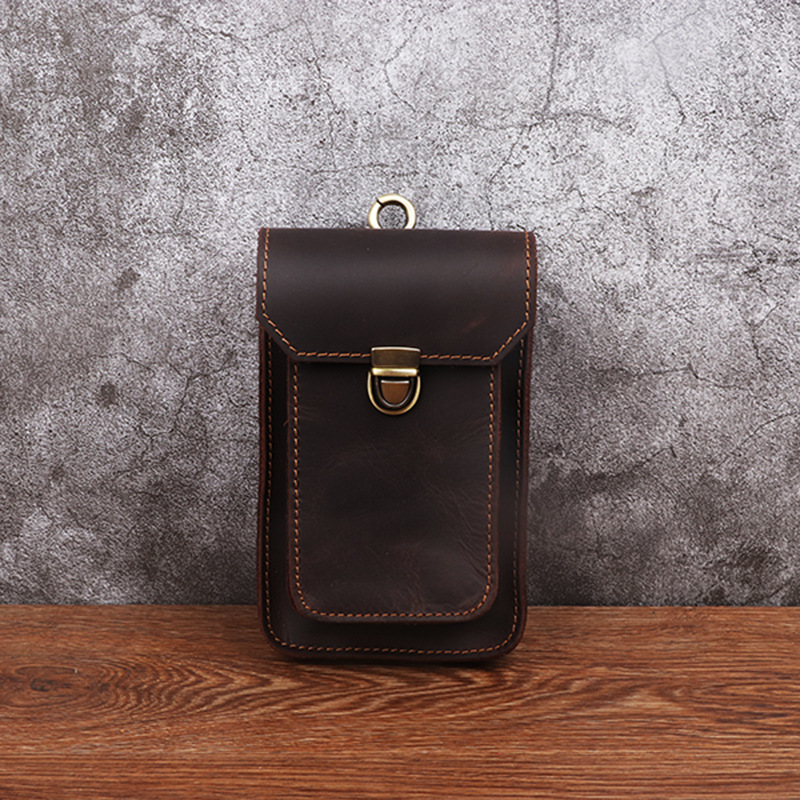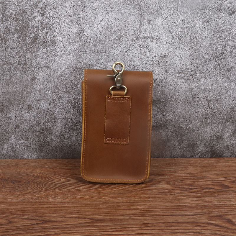 Men's Waist Bag Hanging Bag Mobile Phone Bag Genuine Leather Protective Case Crazy Horse Leather Top Layer Cowhide Outdoor Waist Hanging Bag Wholesale
