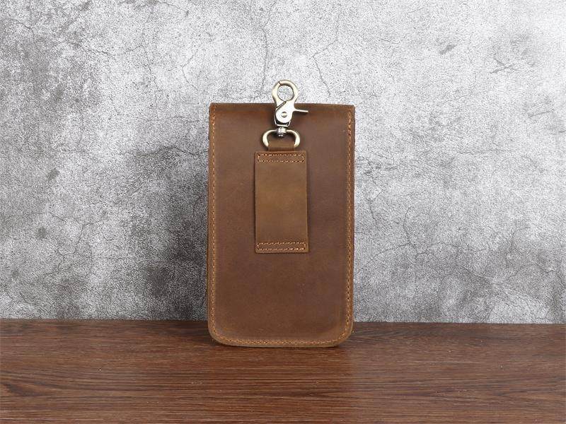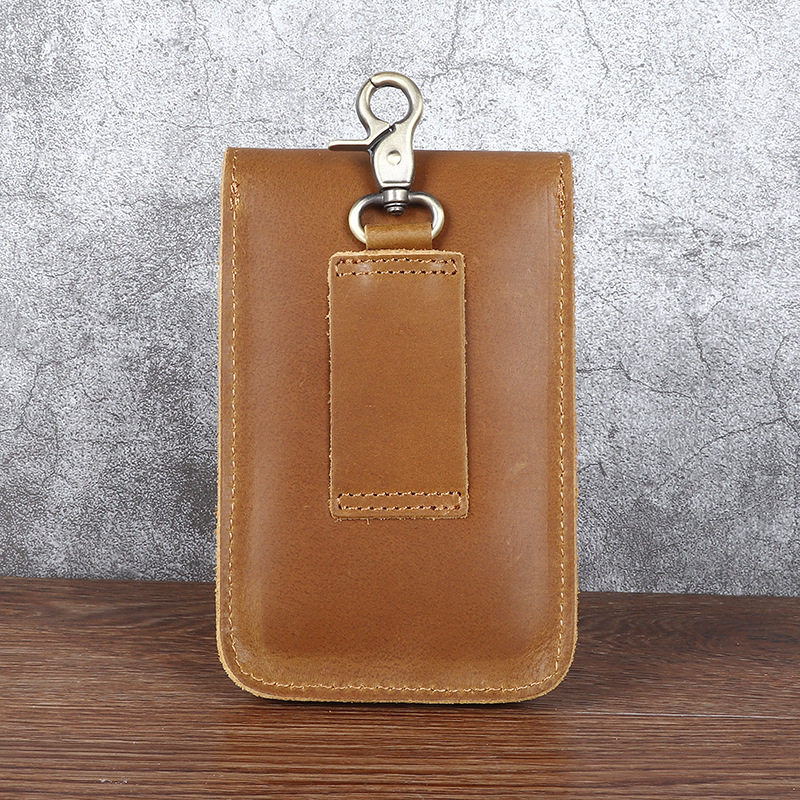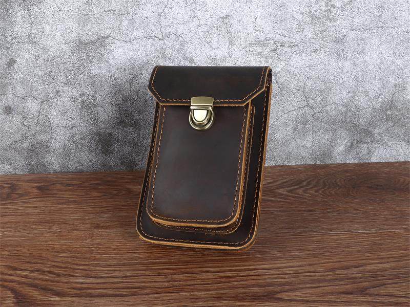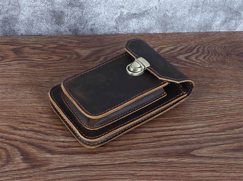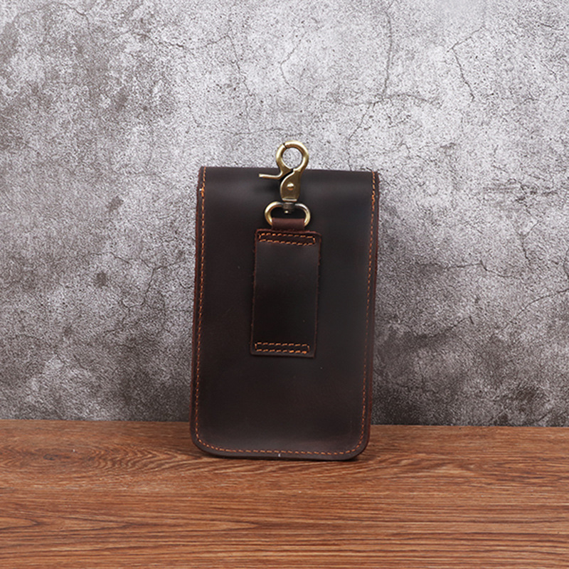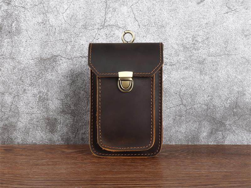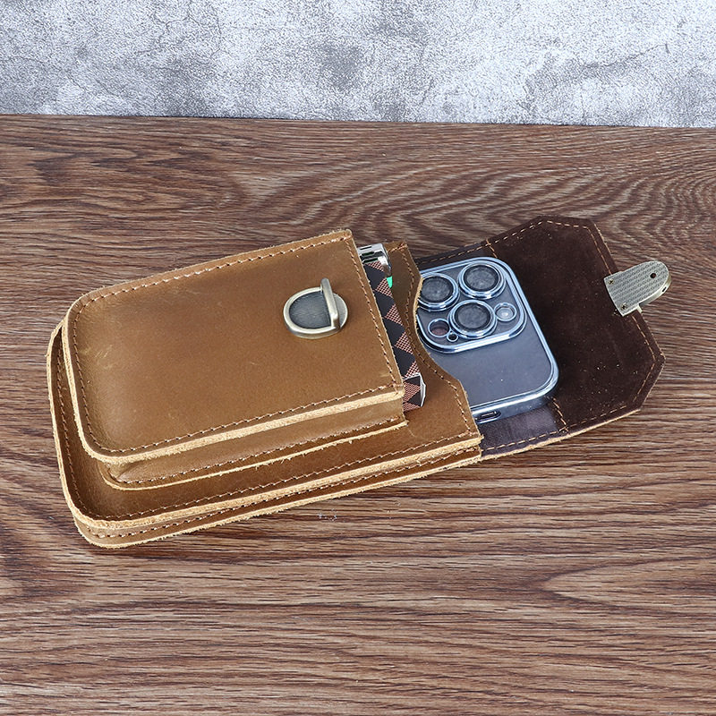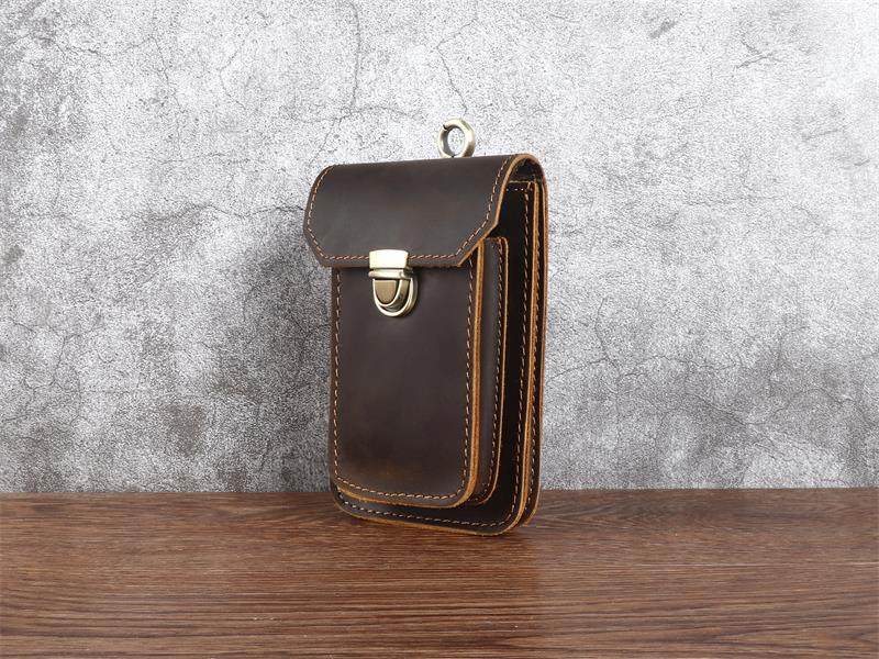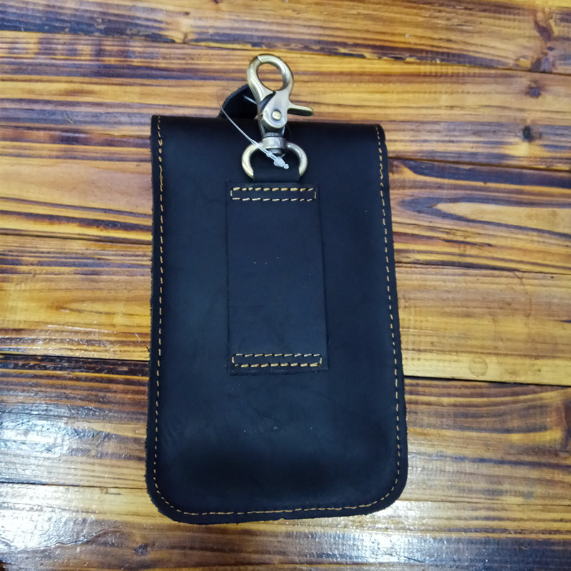 Men's Waist Bag Hanging Bag Mobile Phone Bag Genuine Leather Protective Case Crazy Horse Leather Top Layer Cowhide Outdoor Waist Hanging Bag Wholesale