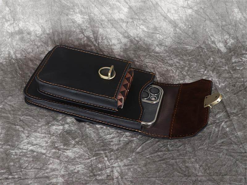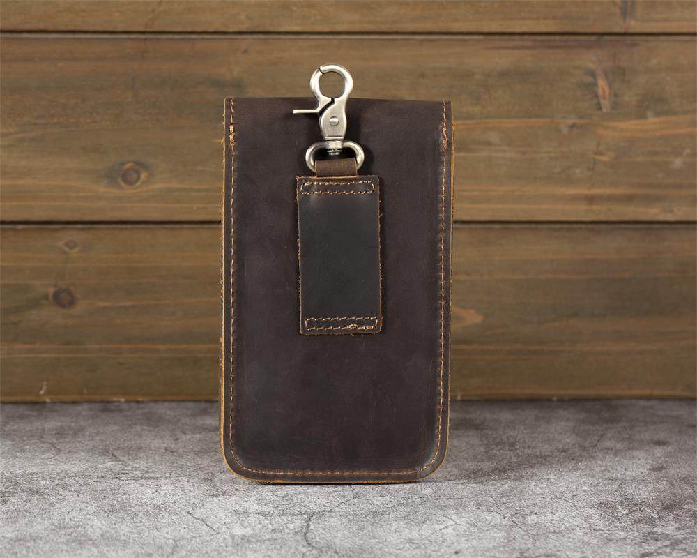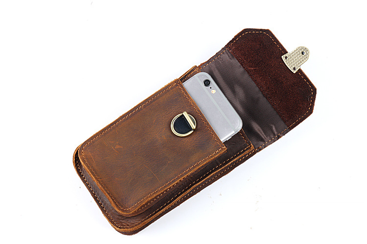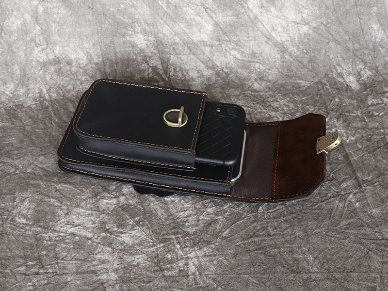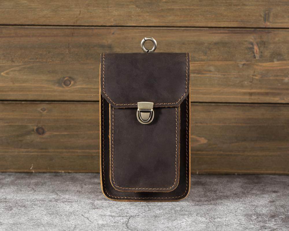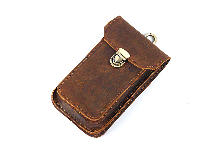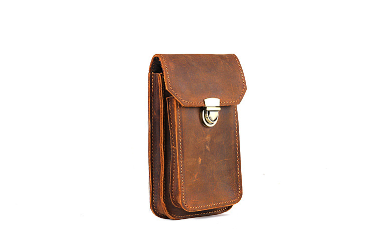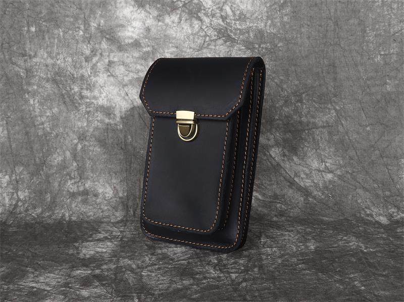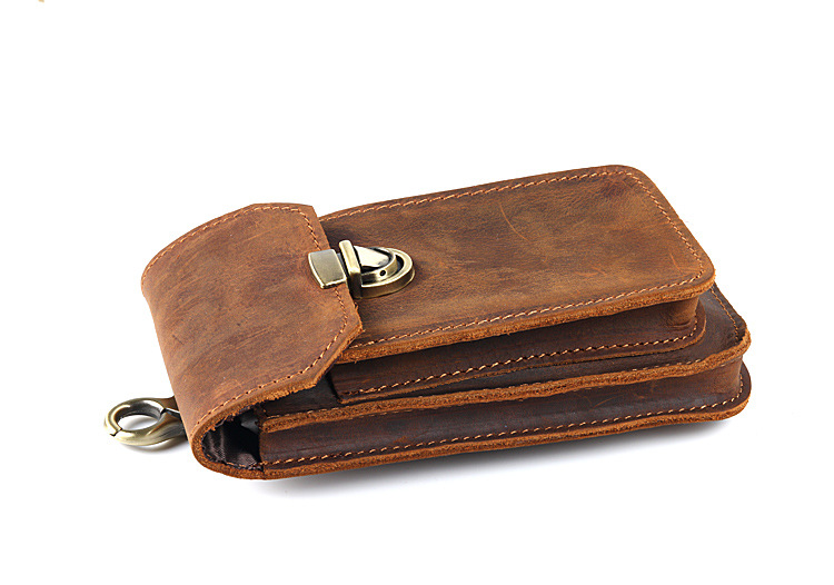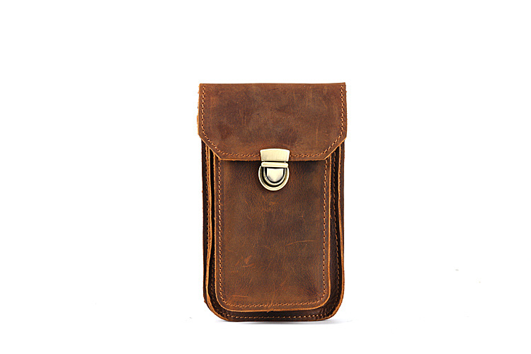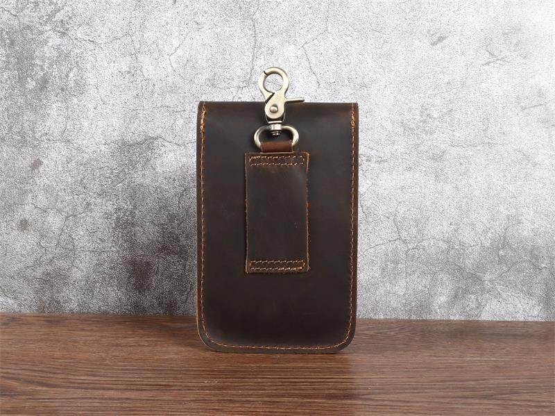 Men's Waist Bag Hanging Bag Mobile Phone Bag Genuine Leather Protective Case Crazy Horse Leather Top Layer Cowhide Outdoor Waist Hanging Bag Wholesale