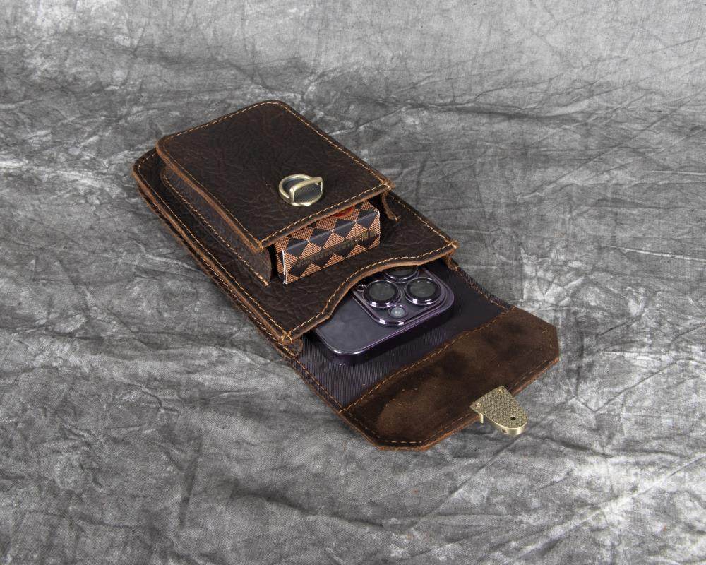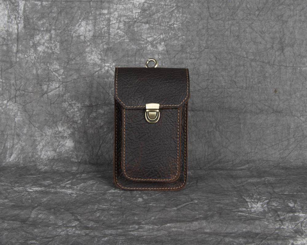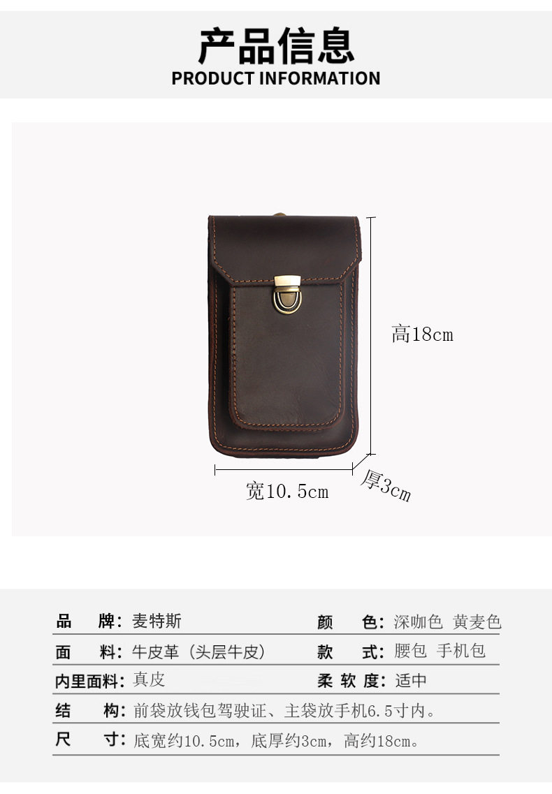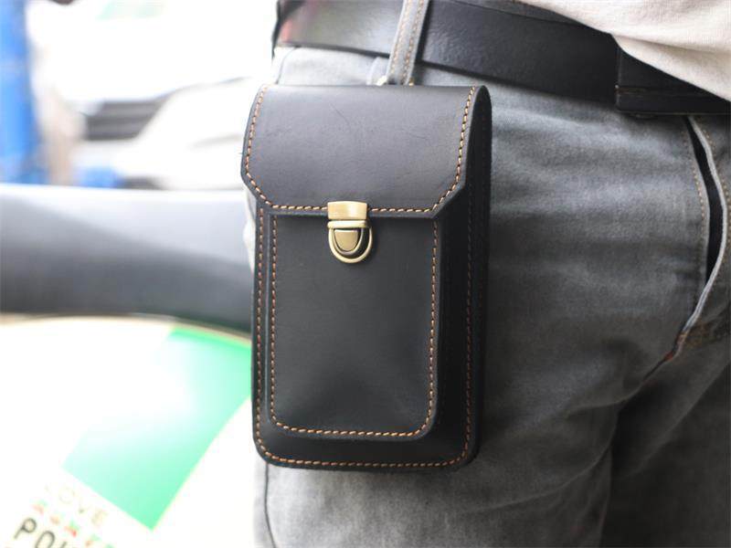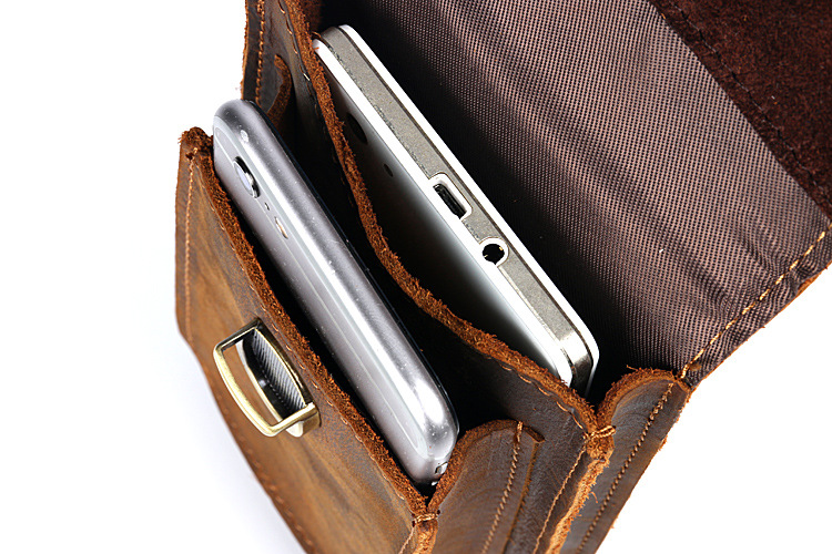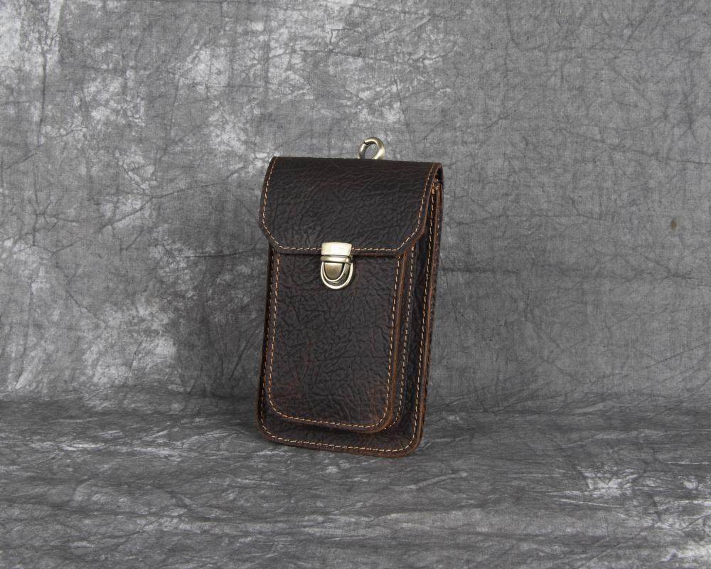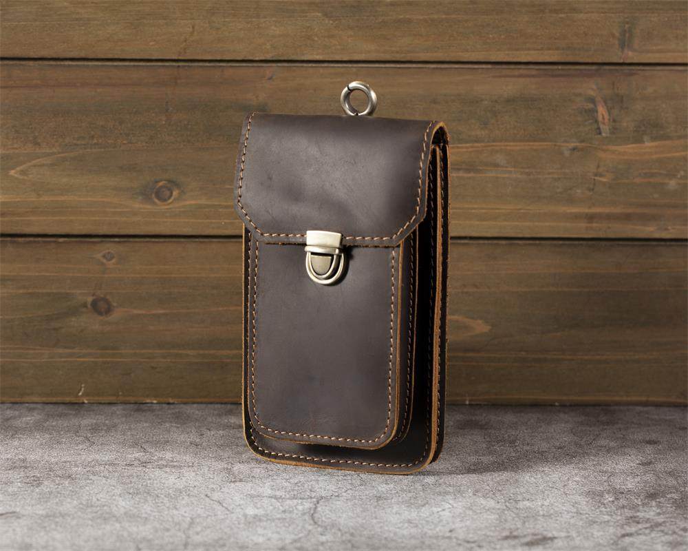 Men's Waist Bag Hanging Bag Mobile Phone Bag Genuine Leather Protective Case Crazy Horse Leather Top Layer Cowhide Outdoor Waist Hanging Bag Wholesale