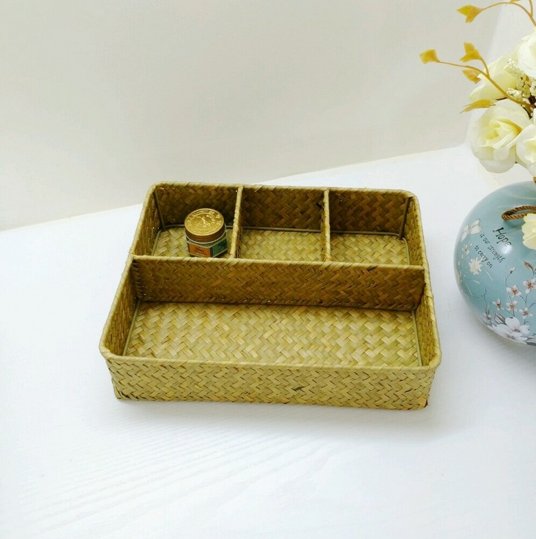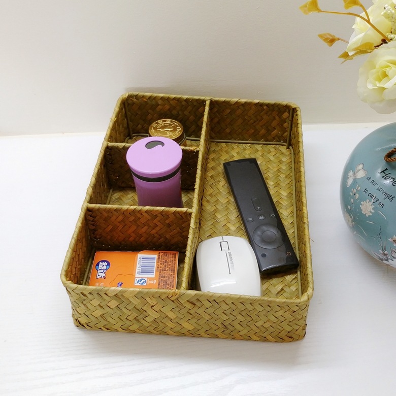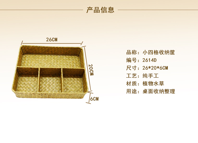 Pastoral Style Seagrass Woven Storage Basket Without Lid Office Desk Sundry Storage Basket Handmade Home Storage Basket