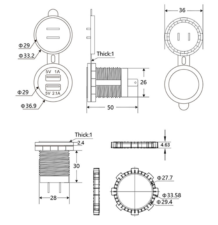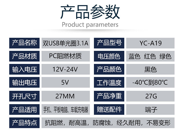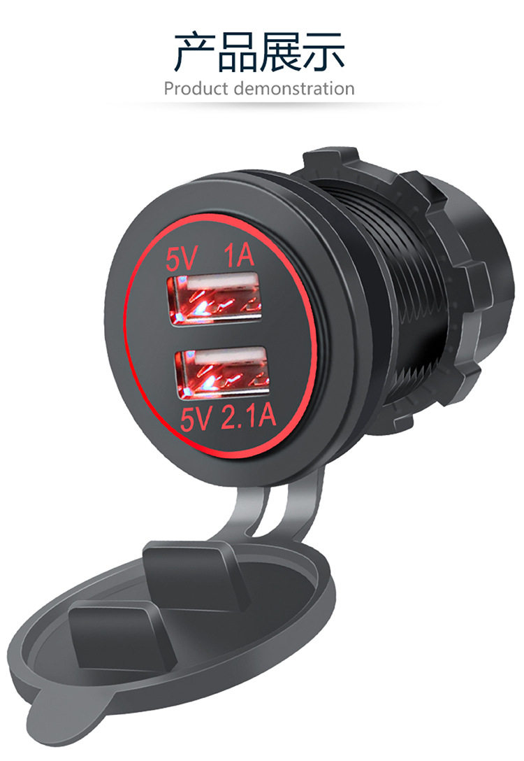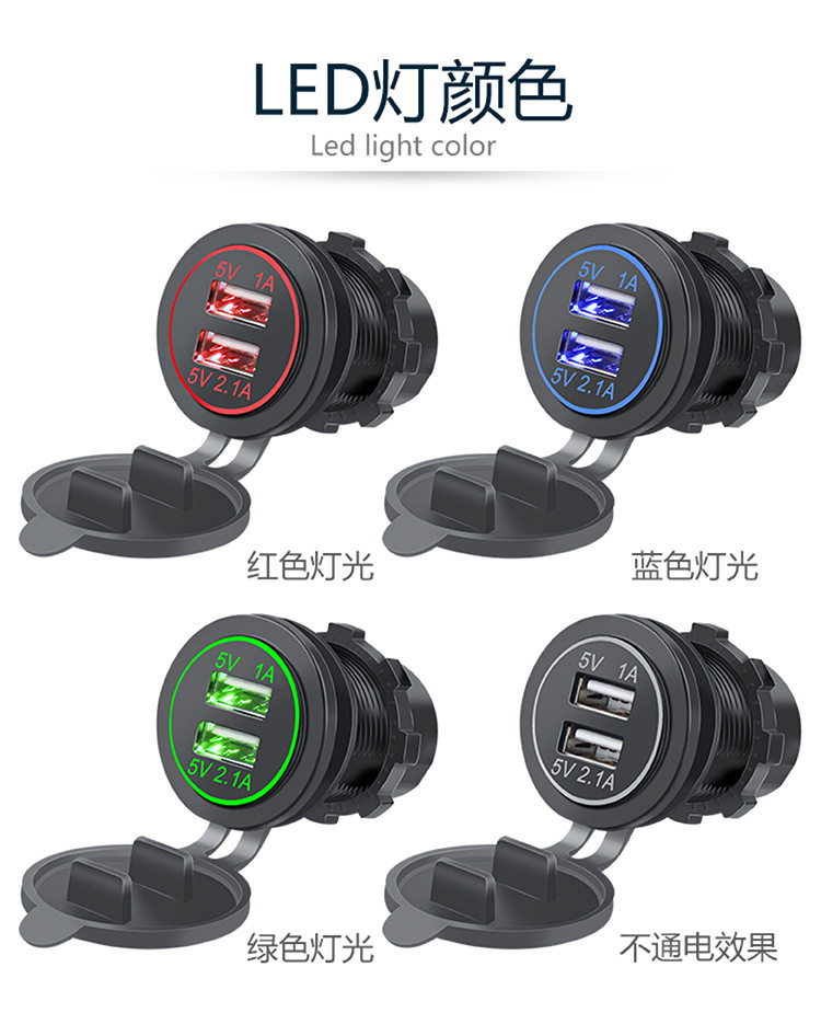 | Model | Double USB red light single circle,Double USB blue single aperture,Double USB Green single aperture,Double USB orange single aperture,Double USB White single aperture |