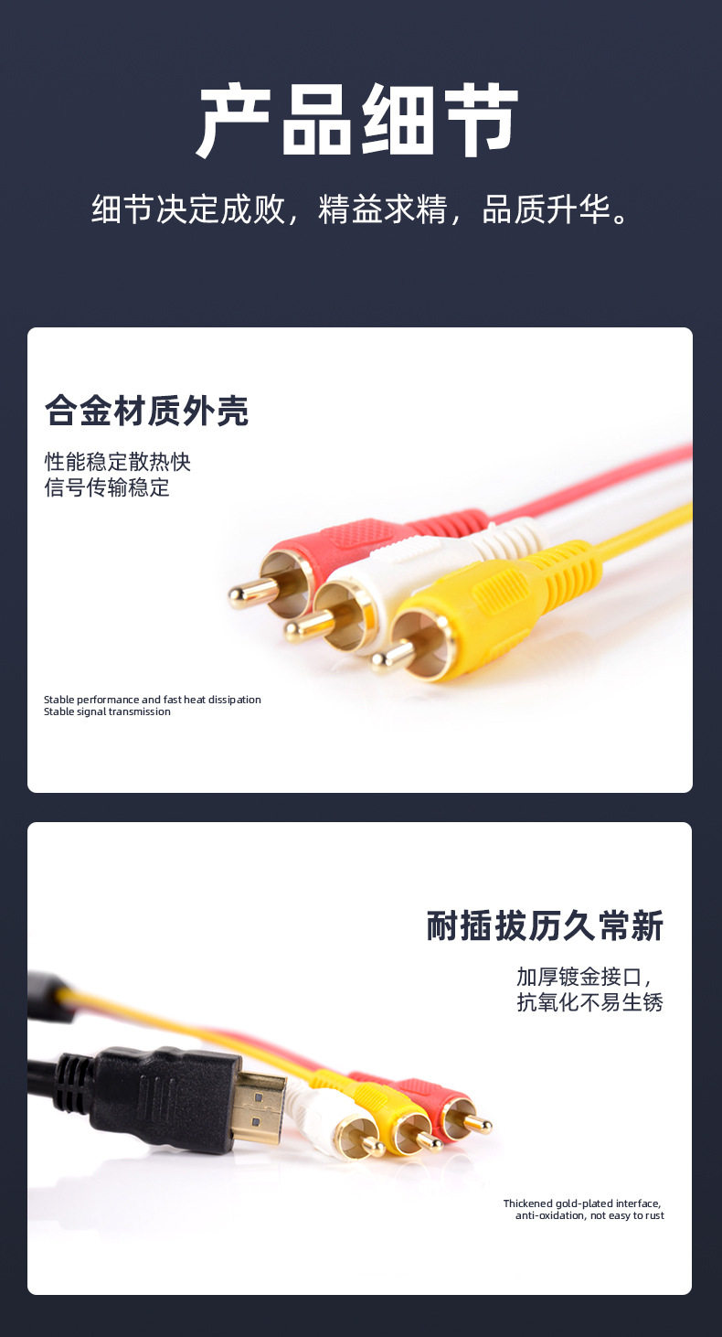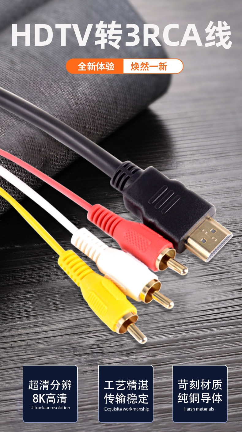Video Display Hd HDMI to 3Rca Cable Conversion HDMI to Av Cable V to Three-Color Difference Cable Audio Cable