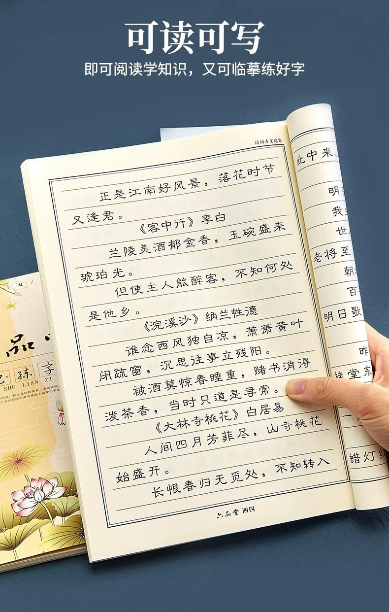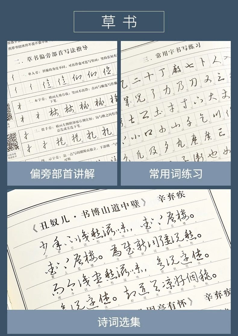 Liupintang Cursive Calligraphy Copybook for Adults, Penmanship Practice Copybook, Selected Poems and Basic Strokes, Hard Pen Introductory Copybook for Beginners