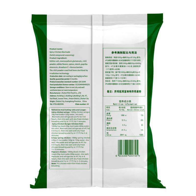 Fulinte spicy chicken marinade 1kg Western fast food seasoning hamburger leg meat raw materials high spicy green packaging