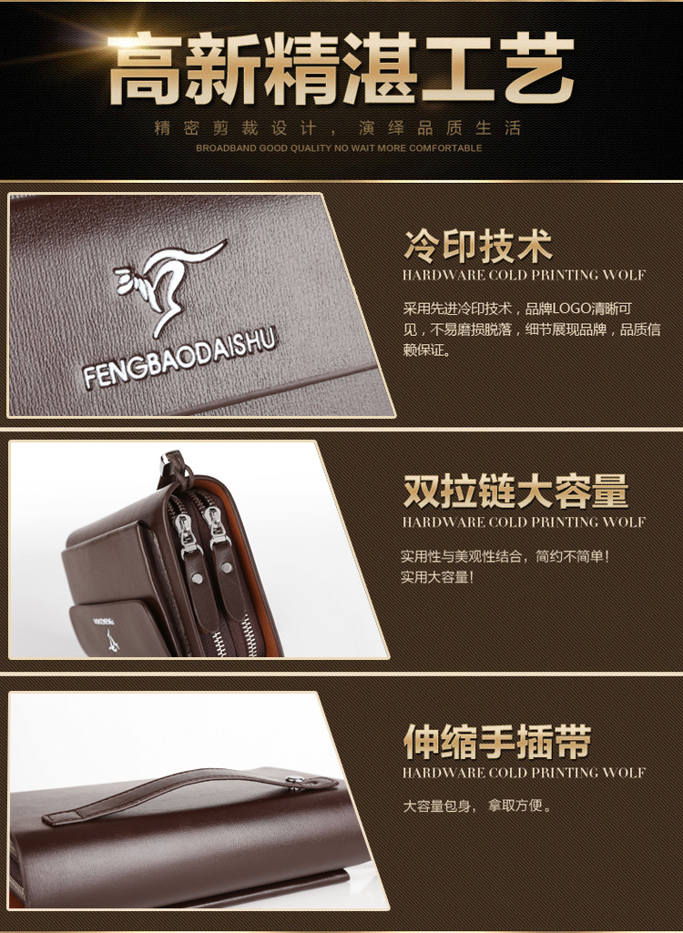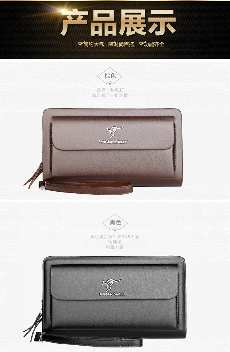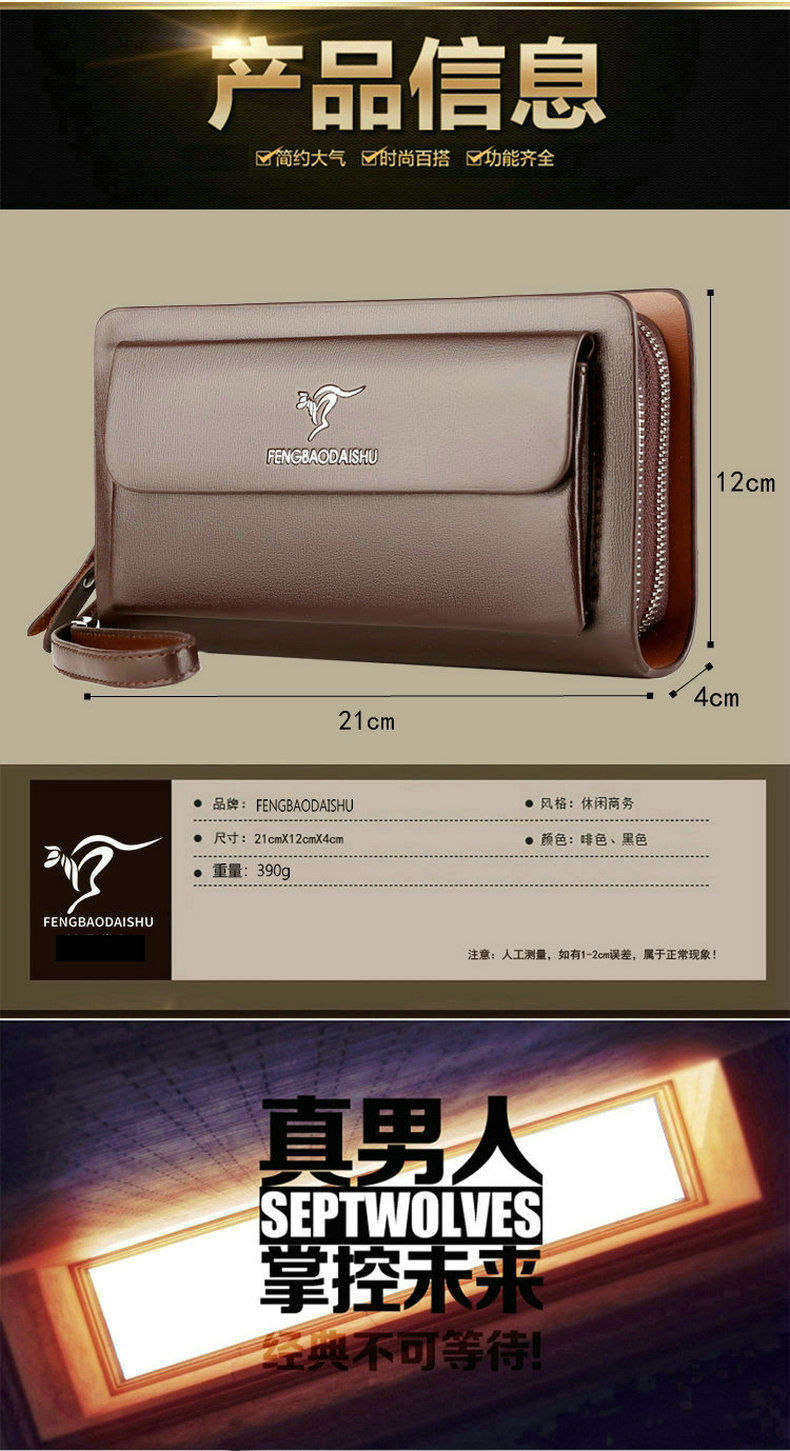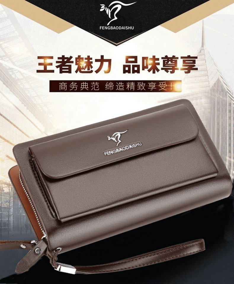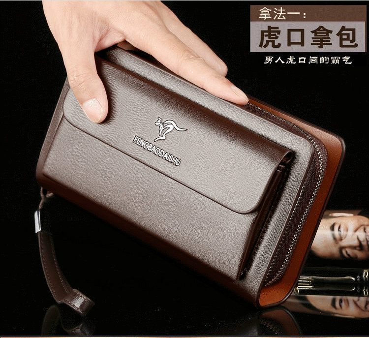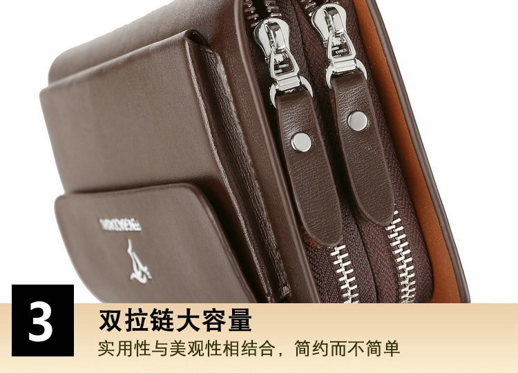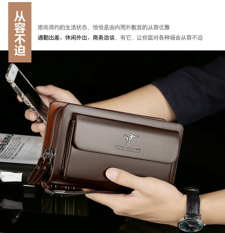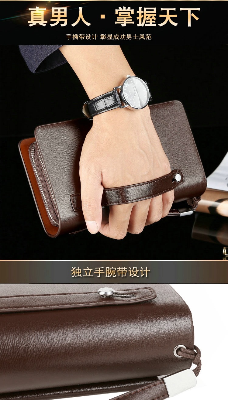 Men's Handbag Business Clutch Bag Men's Double Zipper Large Capacity Mobile Phone Bag Cross-border Foreign Trade Multi-card Clutch Bag