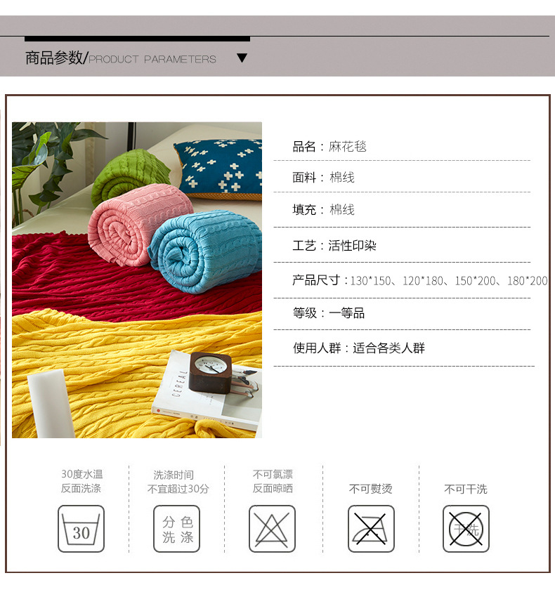 Knitted Blanket, Air Conditioning Cover Blanket, Sofa Decorative Blanket, Knitted Blanket, Yarn Blanket, Twist Blanket, Bed End Blanket, Nordic Style