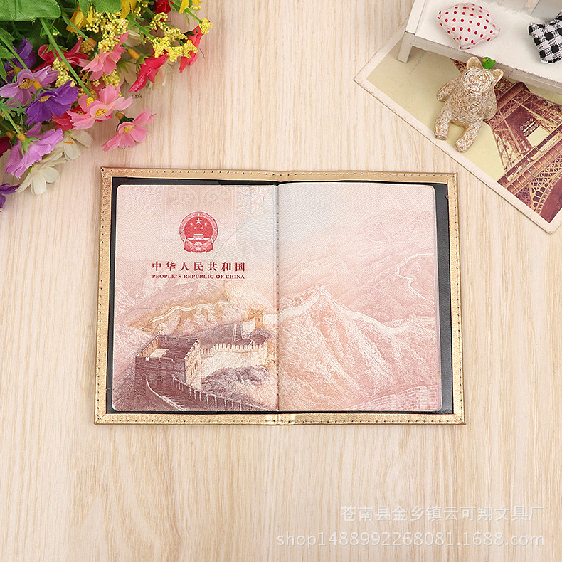 Factory wholesale English plain pu leather passport passport book bright multi-functional document protection cover