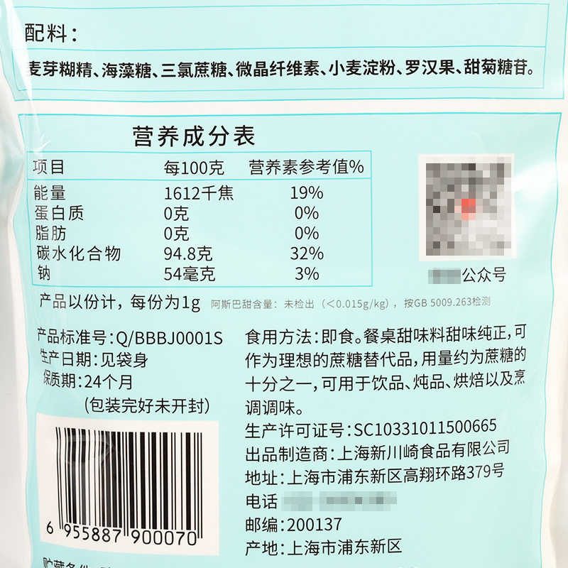 | Raw materials and ingredients | Maltodextrin, trehalose, sucralose, microcrystalline cellulose, wheat starch, momordica grosvenori, stevioside, etc. shall be subject to the actual information of product packaging. |